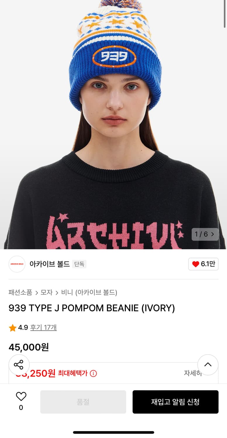 아카이브 볼드 방울 비니 아이보리 색상입니다 색감, 두께 모두 귀엽고 현재 품절이에요 실착 몇회만 해서 상태 매우 좋습니다! 급전으로 팔아요!
