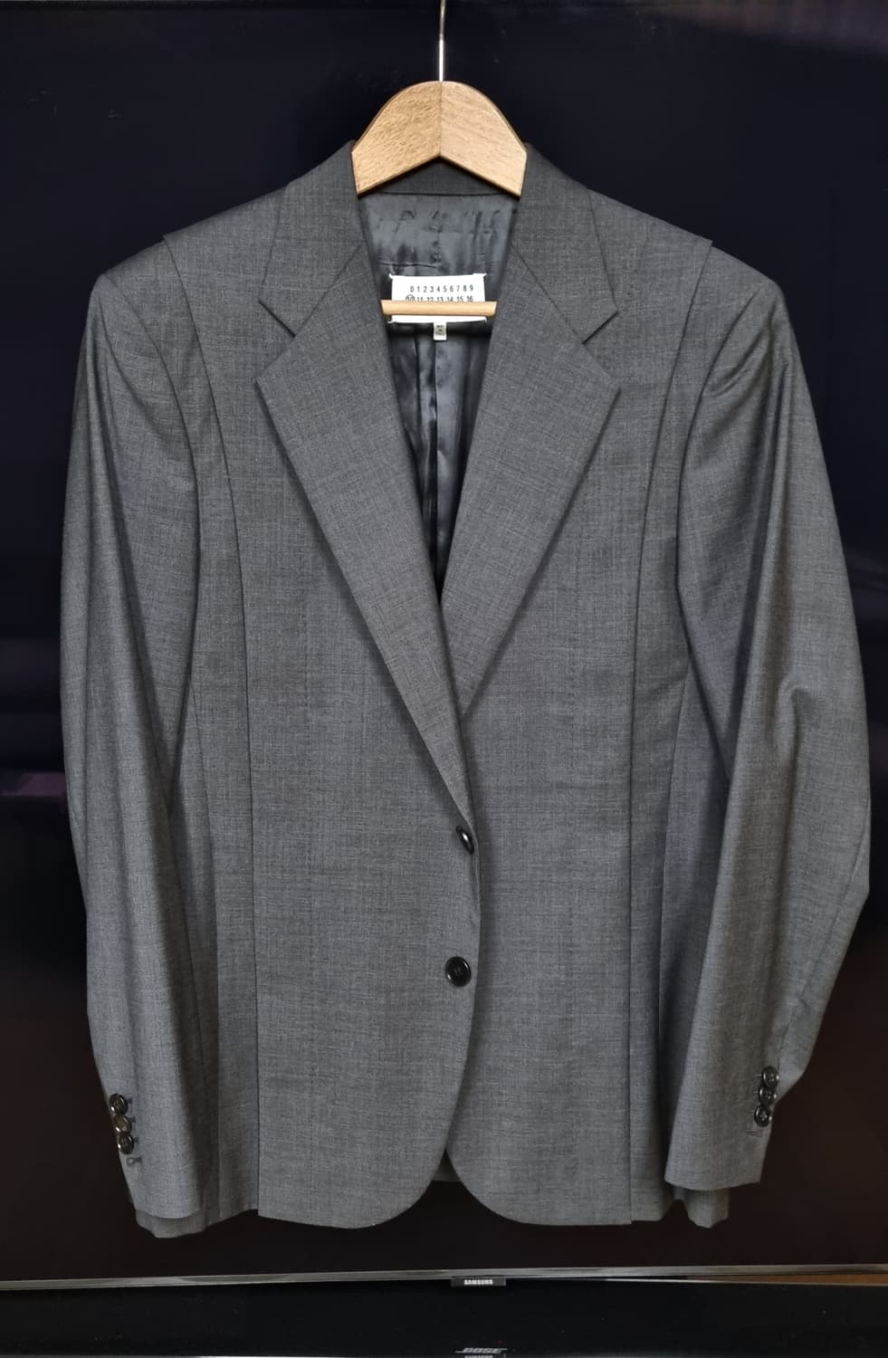 디자이너들의 디자이너라고 불리는 메종마르지엘라의 명작, Italy made 절개 울 블레이저로 표기상 48사이즈인데 100사이즈 클래식한 정핏느낌입니다. 이 블레이저의 특징적인 '절개 디자인'은 그야말로 압권인데, 양쪽 어깨에서 아래로 날카롭게 떨어지는 절개라인을 통해 마치 자켓 두개를 레이어드 한 듯한 오묘한 느낌을 선사합니다. (카라리스 블레이저와 더불어 많은 아류작들이 나오게 된 매우 유명한 디자인입니다.) 하지만 이런 과감한 디자인이 들어갔음에도 전혀 어색하거나 유치하지 않고 아주 절제되고 세련된 무드를 자아낸다는것이 메종마르지엘라의 실력이겠지요. 특히 핏감은 진짜 예술인데 베일듯하게 날카로운 라인들이 입체적으로 온몸에 감기는 느낌이 정말 감동적인 자켓입니다. 유럽출장시 150넘게 주고 구입 후 집에서 실착만 해보고 보관 해 온 제품으로 텍만없는 새제품인데, 사고싶은 제품이 생겨 급처합니다. 이젠 구할 수도 없는 제품이라 소장가치가 매우 높은 피스...진짜 테일러링이 무엇인지를 보여주는 제품이라고 생각합니다. 정말 옷을 좋아하고 가치를 아시는 분에게 넘기고 싶습니다.