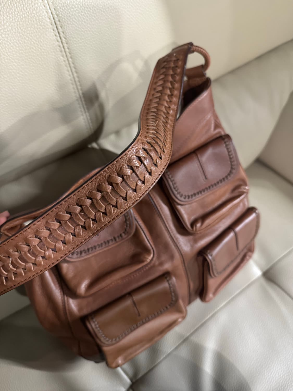 •multi pocket detail shoulder bag •size: cm 41 34(가로 세로) •price: 50000 -예쁘게 빠진 브라운 컬러감에 멀피포켓 디자인으로 넉넉한 수납공간까지 완벽한 숄더백입니다 🥹어깨 스트랩은 트위스트라인으로 빠져서 오묘한 느낌까지 정말 예뿐 아이템이어요