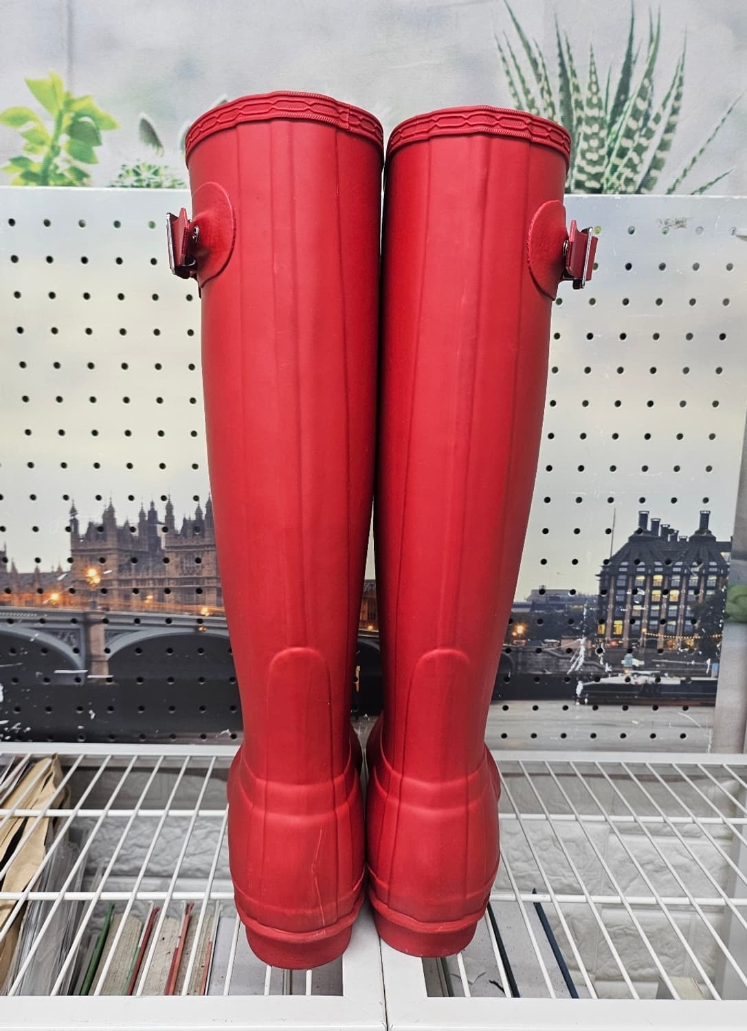 헌터 여성 레인부츠 오리지널 톨 무광 레드색상 W23499 UK4 US6 EU37 235mm 사요조금 (뒷 약한스크레치 1개... 사진참조)외 상태좋음