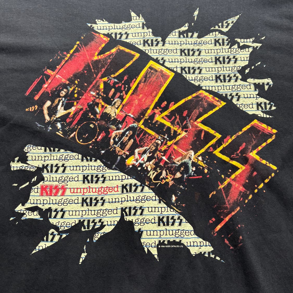 90s kiss band shirt (0416) XL (tag) 가슴60 어깨60 소매21.5 길이75 (cm) 1996년 미국 제조 면100, 튜블러 소매 싱글, 밑단 더블스티치 미국 하드록 밴드 KISS의 1996년 앨범 UNPLUGGED 공식 프로모 티셔츠입니다. 원단 느낌이 아주 좋은 CRONIES 브랜드입니다. 상태는 사용감이 극히 드문 상태이지만, 어깨 봉제와 목, 소매의 이음 봉제 부위에 핀홀이 아주 작게 있습니다. [안내] 모든 상품은 빈티지(중고)입니다. 사용감 및 하자가 있을 수 있습니다. 이로 인한 교환 및 환불은 어렵습니다. #밴드티 #밴드티셔츠 #프로모 #빈티지티셔츠 #반팔티