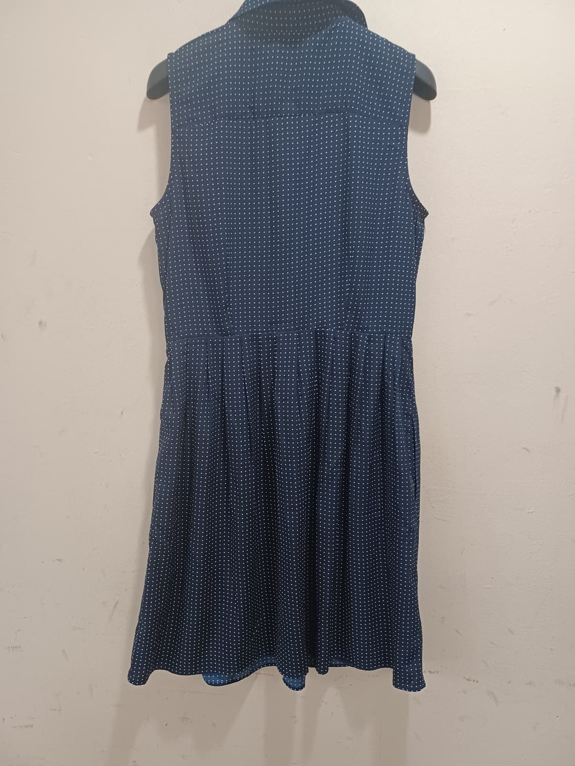사이즈 M 가슴둘레 95 신장 기장 97 재료 폴리에스터 타미힐피거에서 나온 네이비색 도트무늬 원피스에요. 사이즈는 M으로 나왔고 실측사이즈가 95라 약간 여유가 있어요. 허리는 75로 나왔고요. 길이는 97이라 무릎선이고요. 허리선이 예쁘게 들어갔고 스커트는 주름 스커트라 귀여워요. 민소매 그대로 입어도 예쁘고 가벼운 가디건 같이 매치해도 단정해요. 중고 거래 특성상 교환 환불은 어려워요. 반값 및 일반 택배 가능하고 이 제품은 무료배송 상품이에요. 중고 옷이니 새옷 상태를 원하시거나 예민한 분들은 피해주세요.
