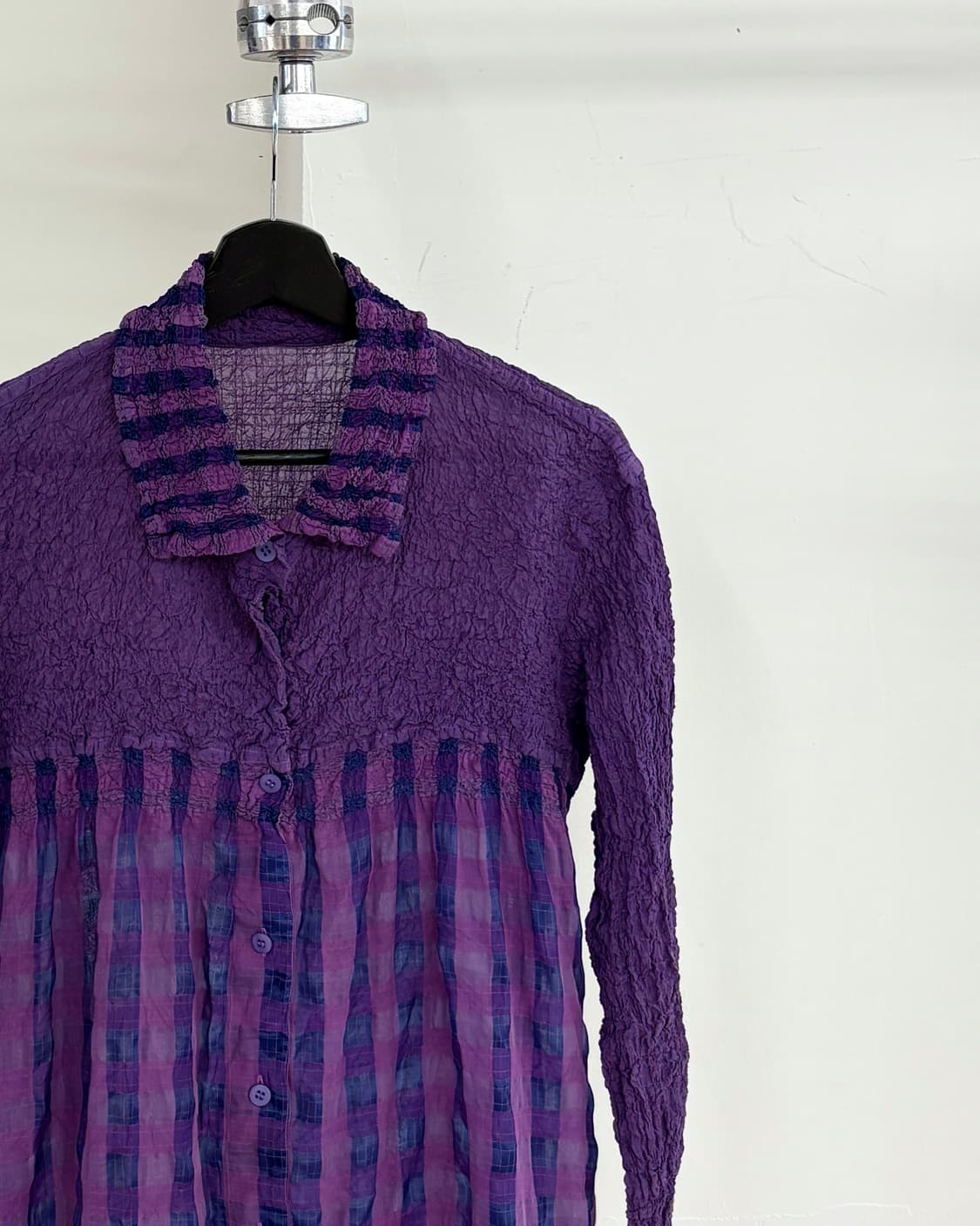 이세이 미야케 미 퍼플 체크패턴 믹스 셔츠 어깨 45 소매 54 가슴 48 기장 76