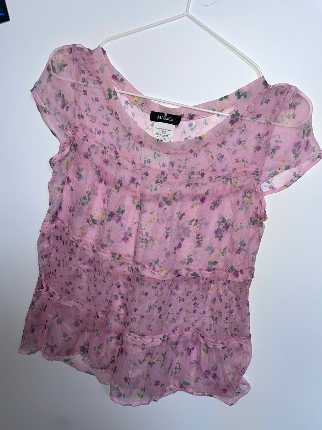 [new] MAX&Co floral see-through blouse COLOR_pink PRICE_59,000(KRW) SIZE_OS 이태리 기반 하이엔드 브랜드 Max Mara(막스 마라) 의 영캐주얼 라인인 막스앤코(MAX&Co)의 플로럴 블라우스 입니다. 모던함과 여성스러움을 표현하는 브랜드의 아이덴티티가 잘 드러난 제품이며, 전체 시스루 타입으로 다양한 믹스매치 스타일링이 가능한 제품 입니다. ♠ 새상품 ♠ 어깨 35 가슴 44 소매 11 암홀 20 밑단 67 총장 58 (CM) ♠ 사이즈 측정 방법에 따라 1~2cm 오차가 있을 수 있습니다. ♠ 교환, 환불 불가 ♠ 컨디션 체크 후 신중한 구매 부탁드립니다.