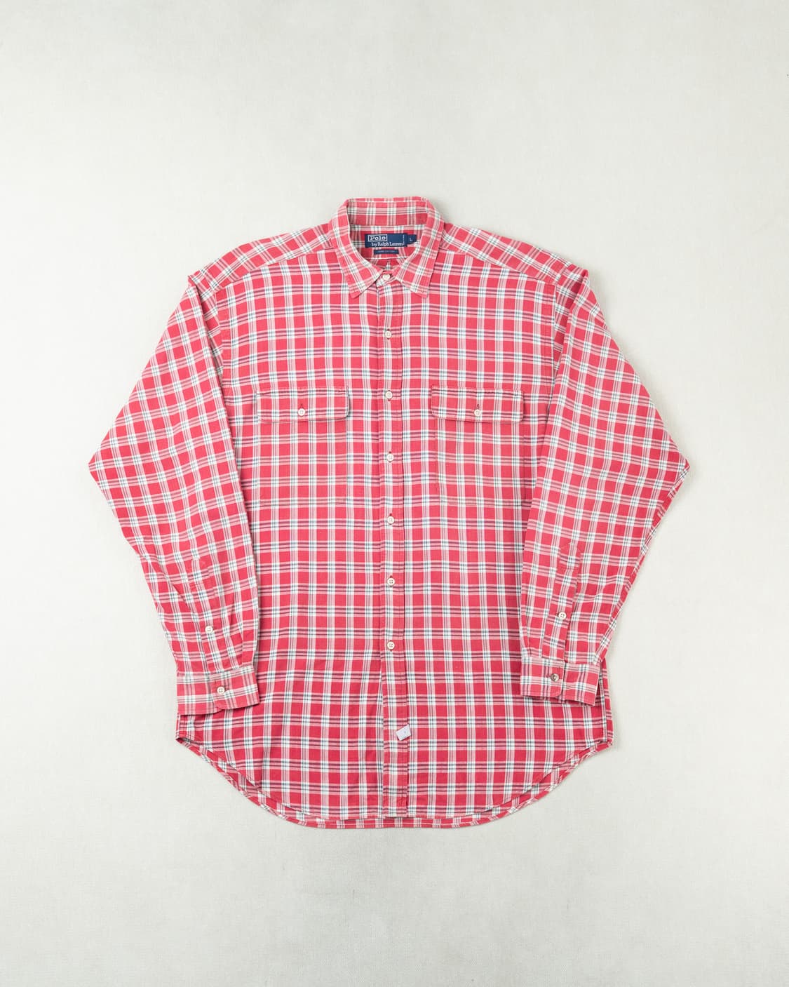 (L) 빈티지 폴로 랄프로렌 레드 타탄 체크 포켓 셔츠