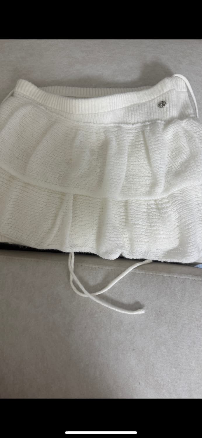 Pain or pleasure 니트 스커트입니다 앙고라 니트 소재로 되어있고, 3단 프릴 디자인이 귀여워요 허리 스트랩으로 사이즈 조절 가능합니다 - 색상: 화이트 - 사이즈: 상세 사이즈는 사진 참고해주세요 - 정가는 93,000원이에요 - 한번 입었습니다