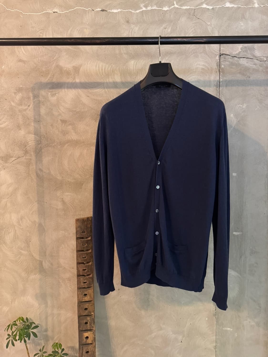 네이비와 블루톤의 색감을 오가며 고급감을 남긴 이탈리아 브랜드 로베르토 콜리나의 카디건입니다. 이걸 스파브랜드의 기본 카디건과 비교하시는 분들이 있으시더라고요. 네 그냥 거기까지 인겁니다. 그건 사이즈 100