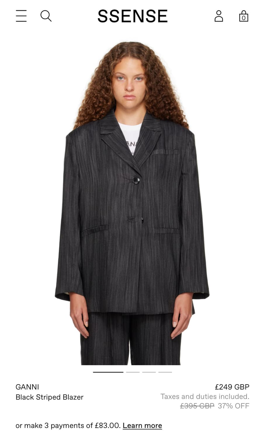 실착 3회 / 새상품급 /Ganni black 스트라이프 블레이저