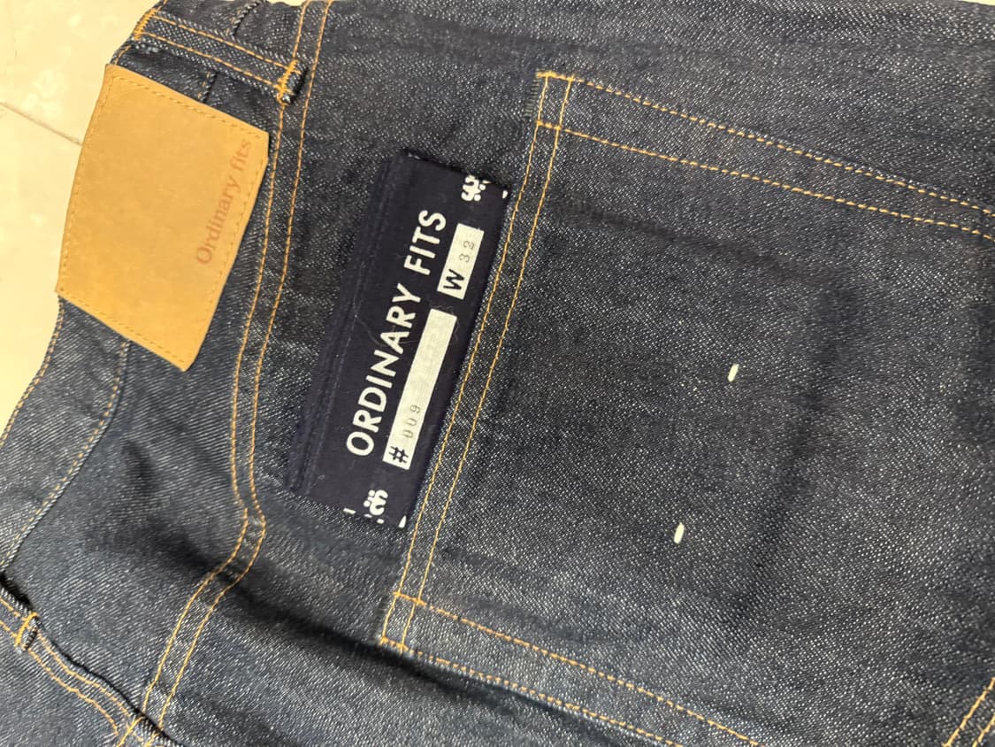 오디너리 핏츠 TACK 5POCKET DENIM one wash 입니다. 택 제거 후 보관중이며, 사이즈 32, 실착 없습니다.