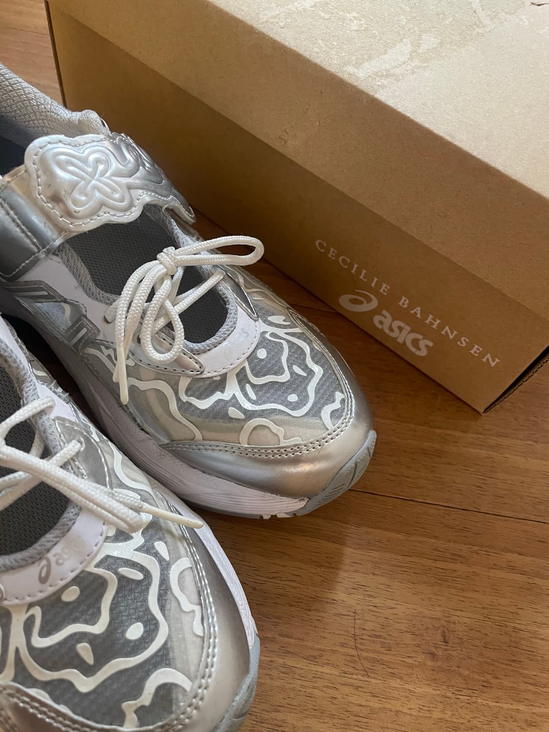 런칭때 코펜하겐 세실리에 쇼룸에서 구매햇습니다! 4번 착화했고 사진과 실물 동일합니다 사용감은있으나 하자 일절없어요! 크림에 245사이즈 110만원에 거래되고 있습니다 직거래는 경복궁역에서 가능해요