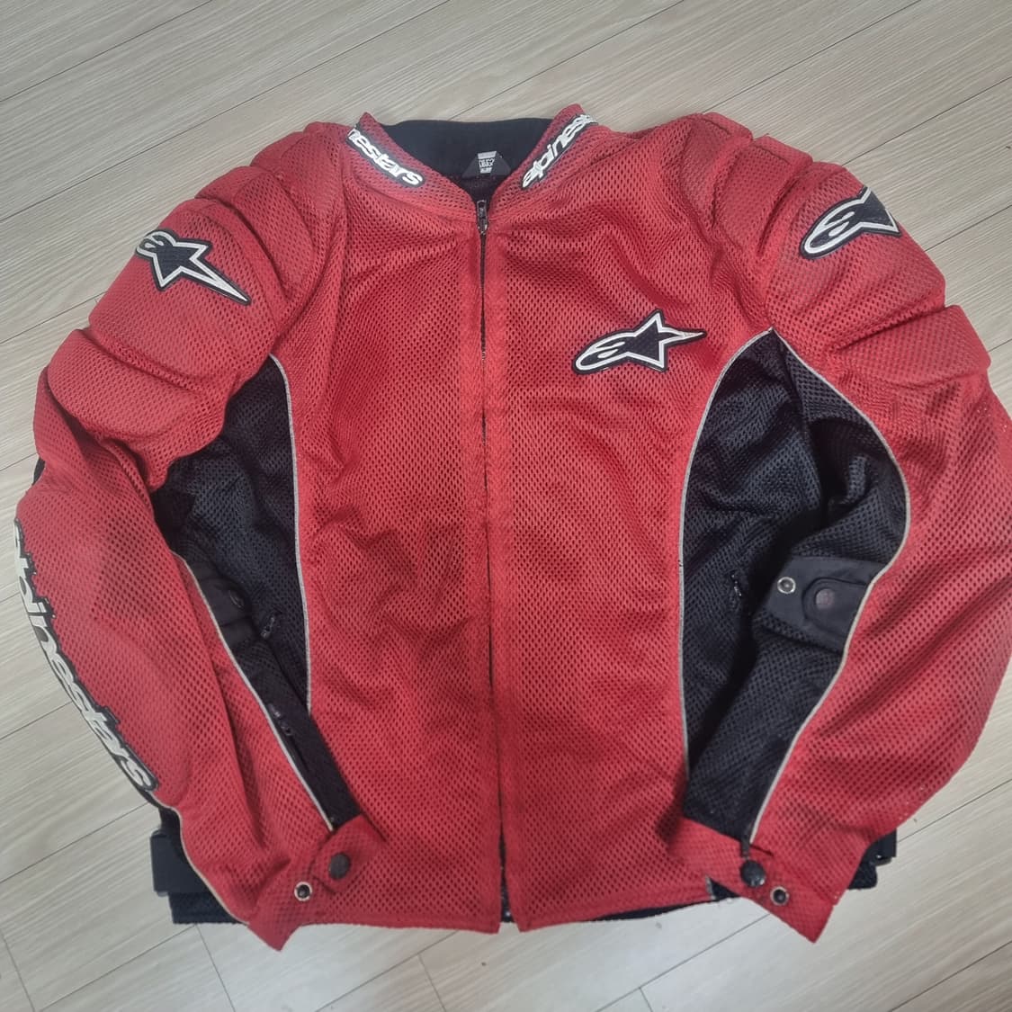 알파인스타(Alpinestars) 남성용 메쉬 자켓(L) 100-105정도입니다 정열의 붉은색으로 팔, 어깨 보호대 들어가 있고 오염망실없이 상태좋으나 보관실수로 지퍼.똑딱이에 파란녹이 좀 있어서(다이소연마제로 지워질듯) 저렴하게 드려요 사용에는 지장없고 표시도 잘 안나요 구매자분이 택비부담하시면 반품도 되니 사진보시고 편안하게 구매해주세요