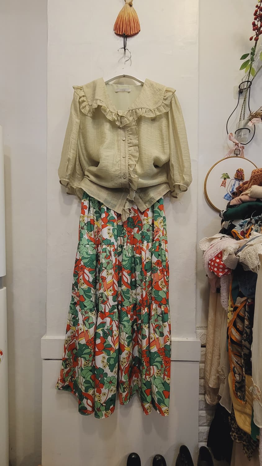 입금순 거래입니다 배송비 4000입니다 문의전 상세설명 꼭 읽어주세요 챗팅은 구매결정 하신후에 신중히!!! 감사합니다 ~^^♡ 1.케네스레이디 프릴블라우스 66 반품51 총장57 부드런 레이온 실크소재 과하지않은 프릴과 과하지않은 벌룬 톤이쁜 연두그린 사용감없어요 30.000 2.트로피컬 롱스커트 허리밴딩 프리사이즈 부드럽고 촤르르 총장87 디피용 새상품 20.000 각 배송비4000