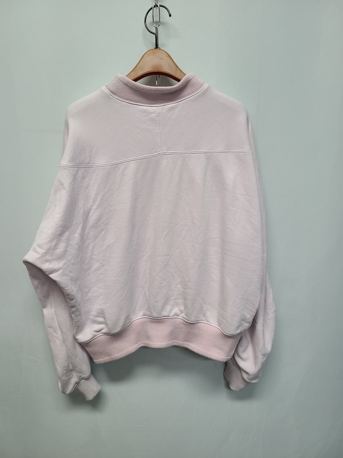 오브제 연핑크 82사이즈 넥라인과 허리시보리 부분 니트로 배색 가오핏으로 루즈한 맨투맨입니다 소매부분 옅은 얼룩. 마지막 사진참고 그외 상태 좋아요 택포