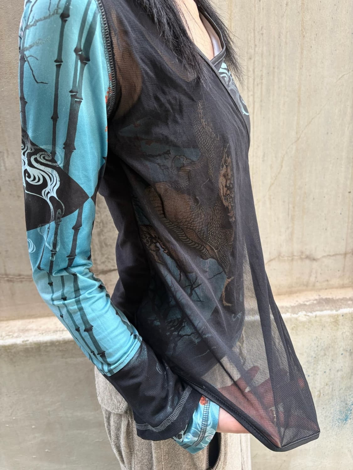 • 빈티지 오즈온 ozz on 오리엔탈 시스루 매쉬 롱슬리브 탑
