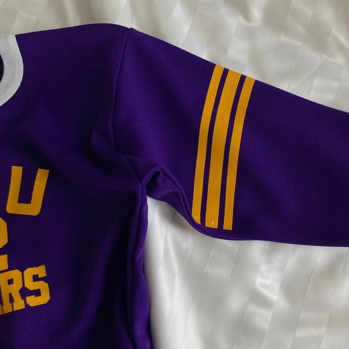 USA made 빈티지 80s 퍼플 옐로우 프린팅 풋볼 하키 져지 셔츠입니다. - Made in USA - 표기 사이즈 M - 소소한 사용감외 큰 하자X - 가슴단면 43cm - 총장 54cm