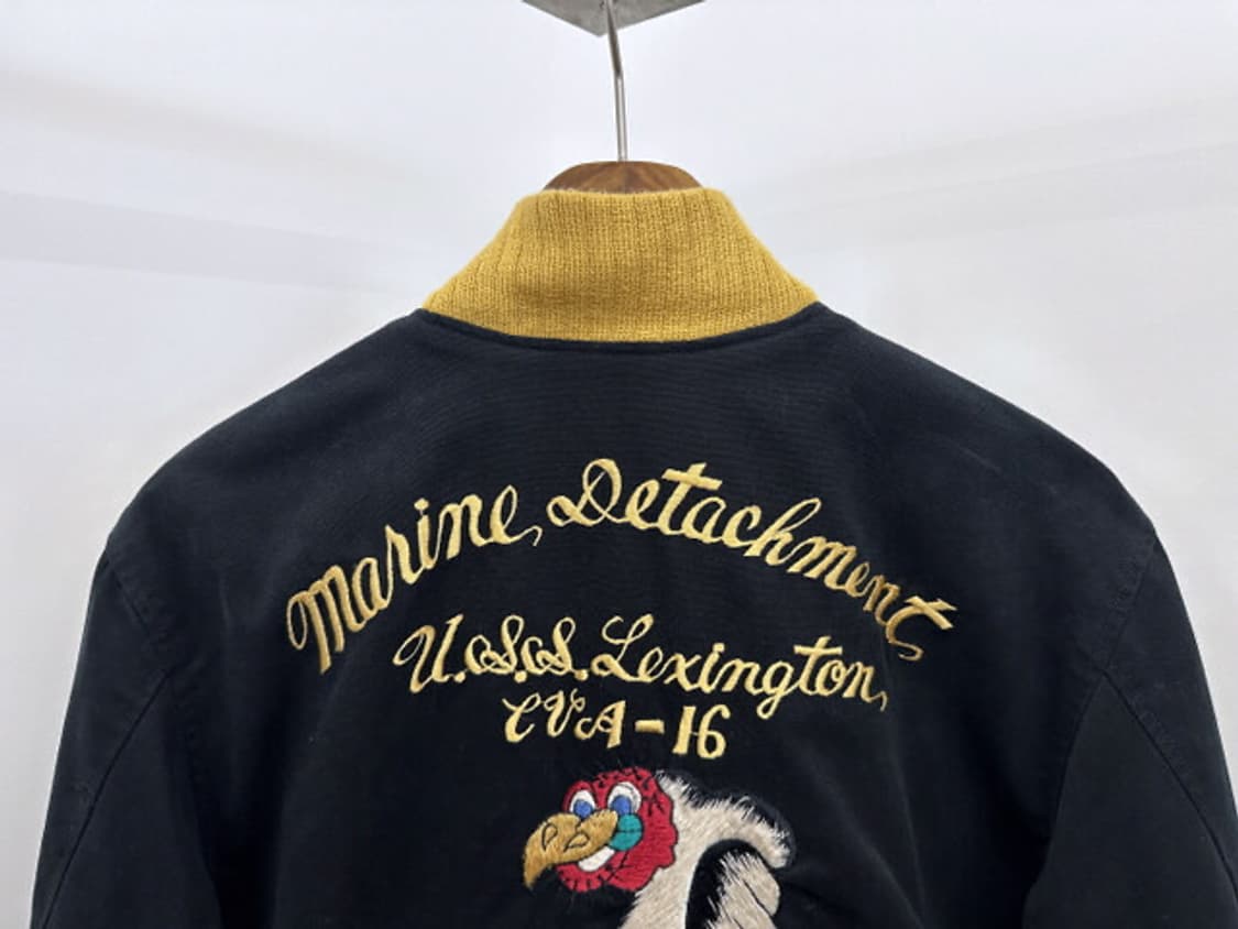 어깨_46 가슴_58 소매_62 기장_60 일본 토요 앤터프라이즈 산하의 워크, 밀리터리 기반 인기 브랜드 BUZZ RICKSON에서 제작한 투어 재킷 코튼 원단 제작 추정 자수와 패치, 멋스럽게 진행된 페이딩