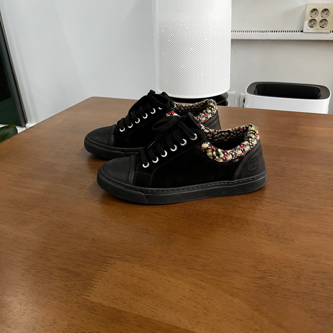 컨디션 : 9/10 사이즈 표기 : 35 샤넬 트위드 스니커즈입니다 표기 35 , 사진과 같은 바닥 일상 사용감 정도 존재 배송 주말 , 공휴일 제외 오후 2시 이전 주문건 CJ 대한통운 당일발송