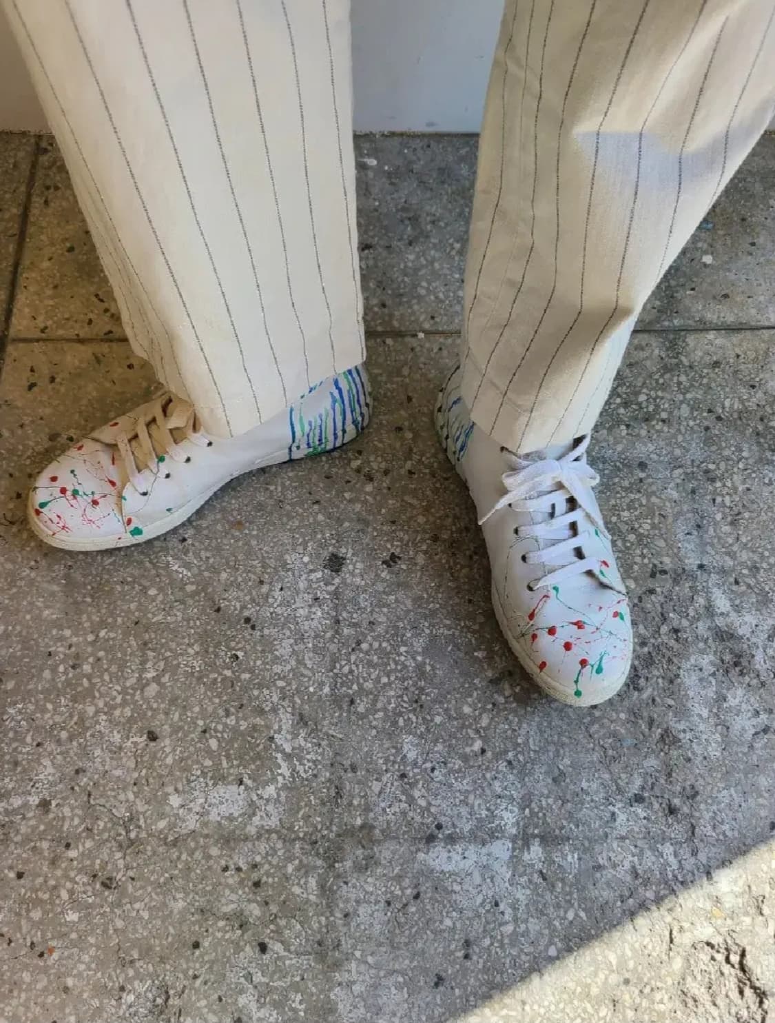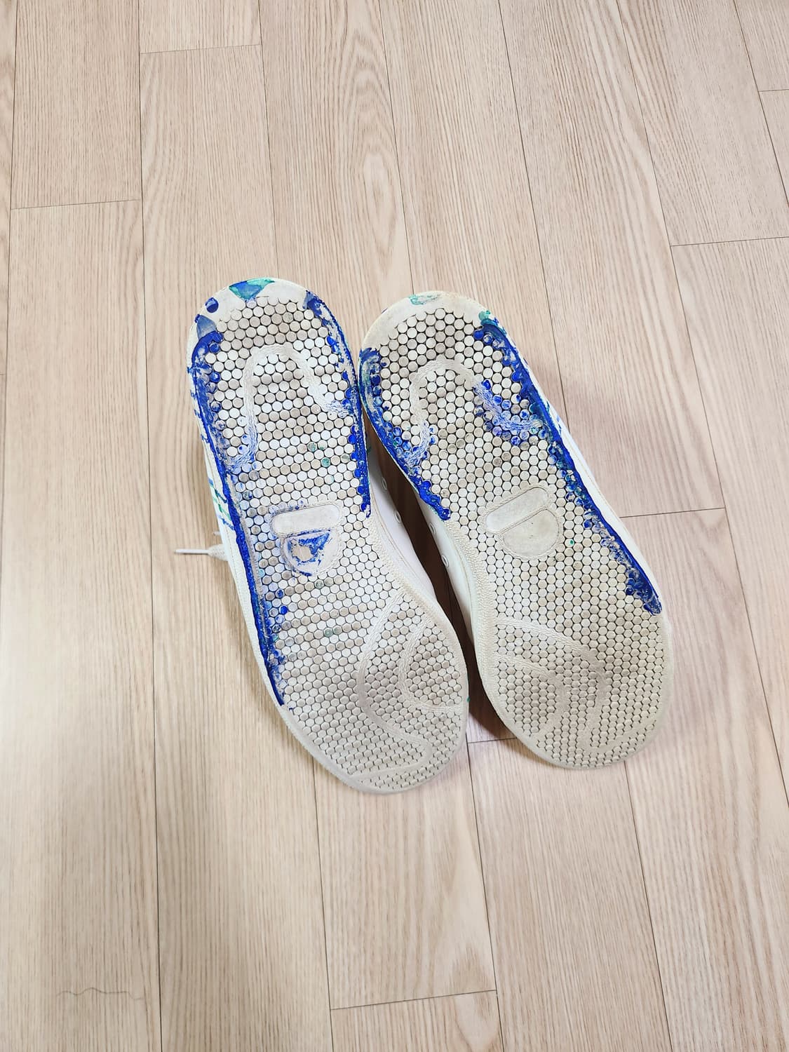 사이즈 : 국내 270 배송방법 : 운포 페인팅과 빈티지 크랙 가공 커스텀했습니다. 착샷 이후 한 번 더 워싱 가공하며 슈레이스 등 조금 더 러기드하게 만들었습니다.