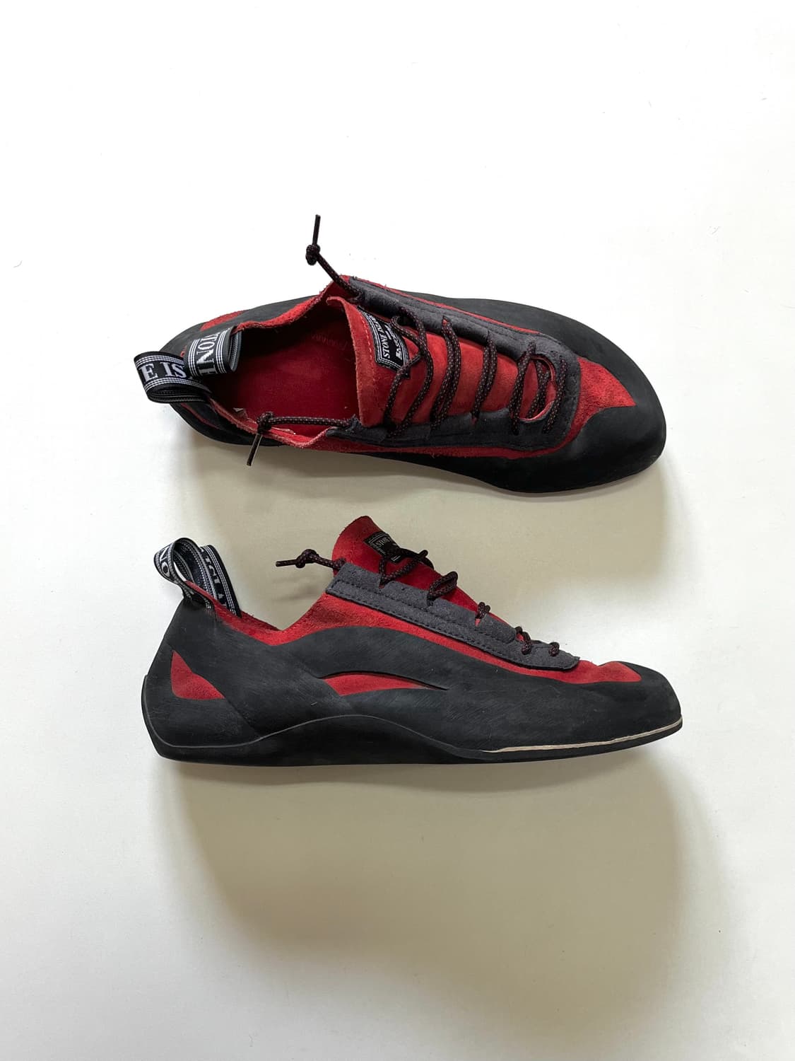 STONE ISLAND MADE IN ITALY 독특한 쉐잎 디자인에 컬러감이 매력적인 스톤아일랜드에서 2005년 발매된 클라이밍 슈즈 제품 입니다 이태리의 전문 신발 제조 업체인 라 스포르티바 와의 기술 협업을 통해 제작된 제품으로, 신발 곳곳에 모던하게 디자인 된 스톤아일랜드의 로고가 매력적입니다 가볍고 힘을 잡아주는 형태의 제품으로, 편한 착용이 가능합니다 size: 240-250 condition: 8.5/10 (사용감 존재하나, 년식대비 우수한 상태의 제품)