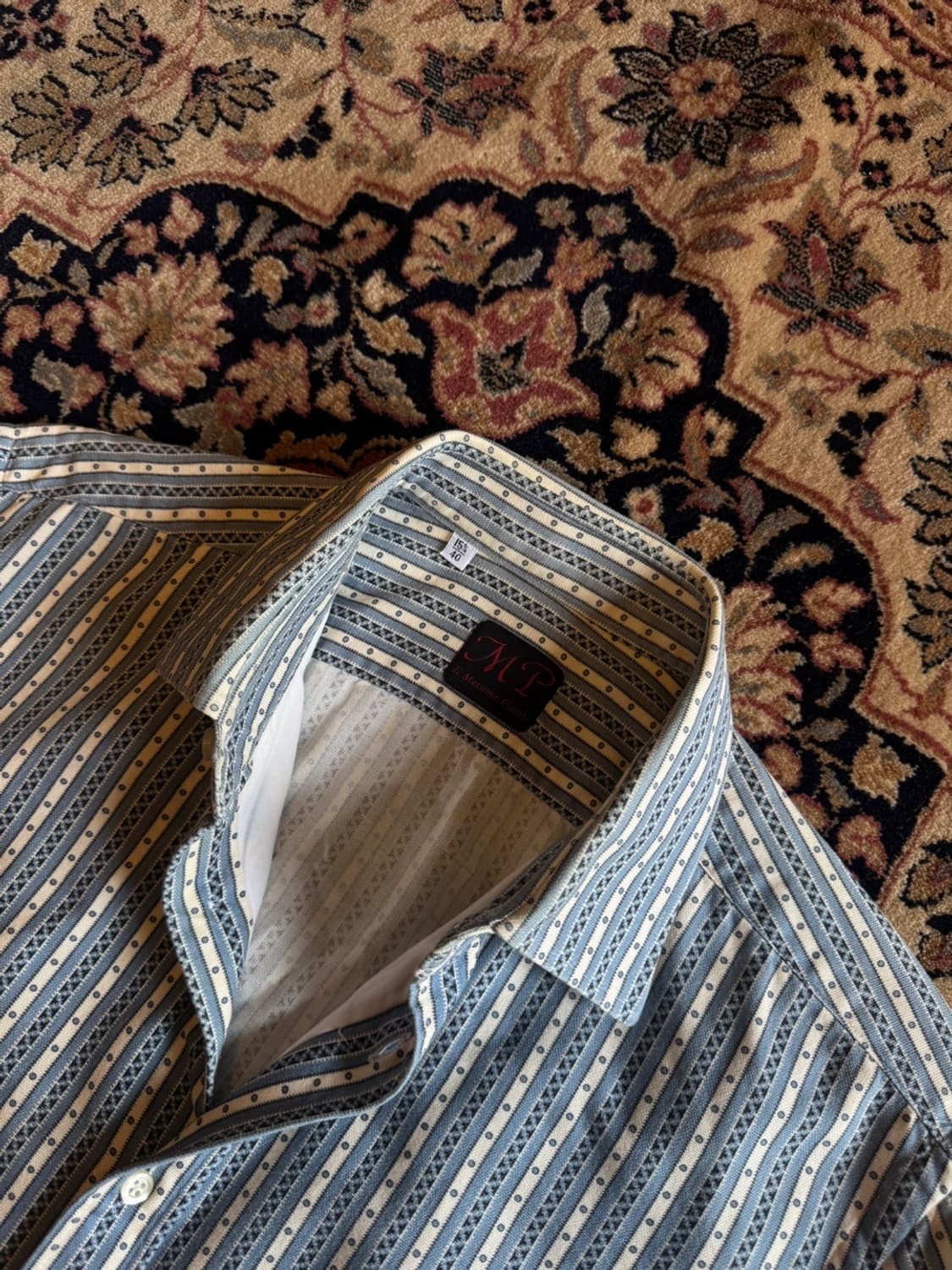 에스닉한 패턴으로 웨어러블함을 더한 이탈리아 브랜드 PIOMBO의 한장입니다. 서걱거리는 코튼의 고급감에 차분한 컬러톤 위에 연출된 오리엔탈무드의 패턴 퍽 와닿는 한장입니다. 사이즈 100 추천합니다. 감사합니다.