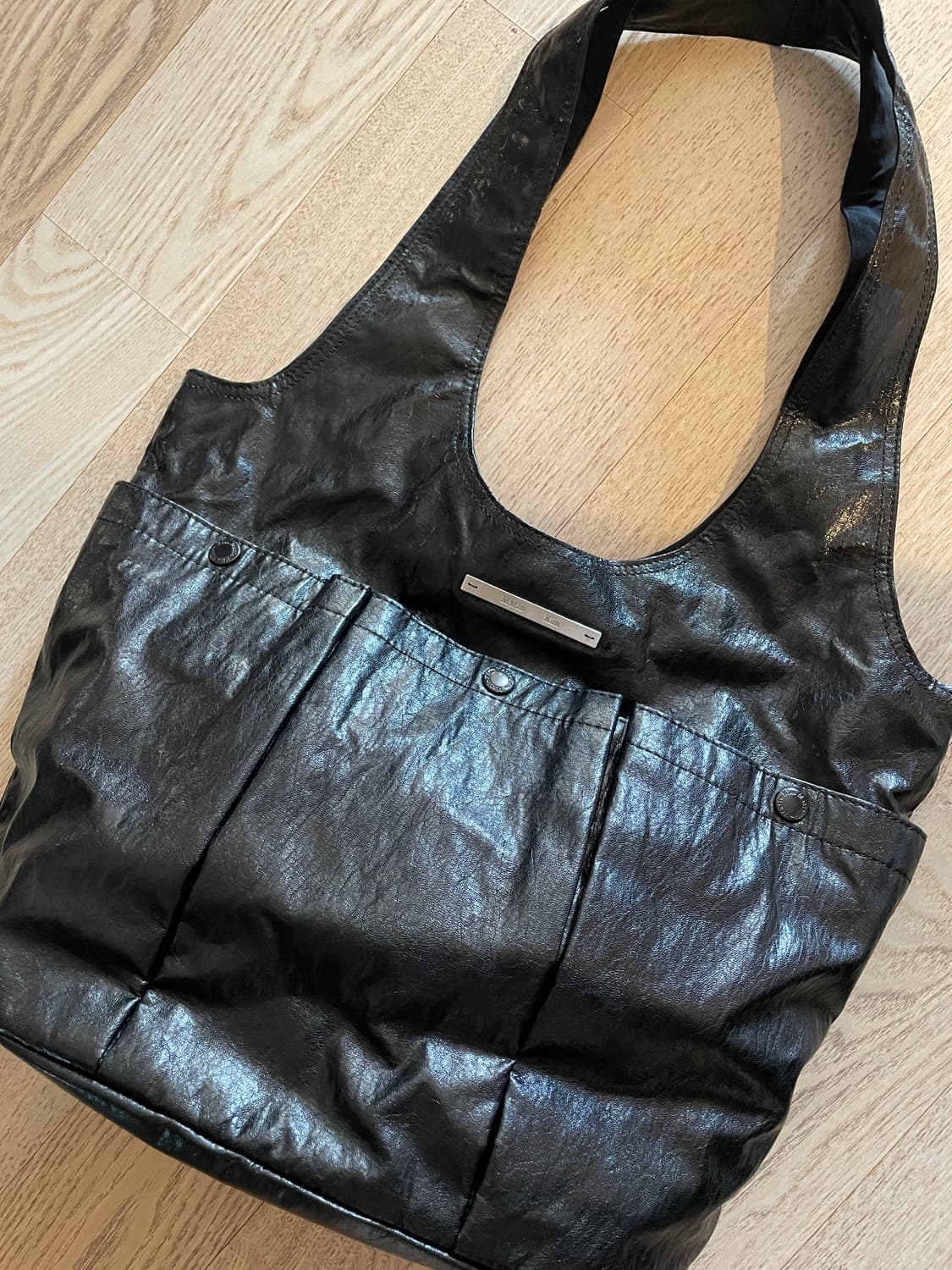 마뗑킴 트리플 포켓 링클 숄더백 블랙입니다. 매우 가볍고 포켓이 많아 실용적입니다. 1회 실착으로 새상품급이며, 내부 지퍼 비닐은 그대로 붙어 있습니다. 현재 품절 상품. - 브랜드: 마뗑킴 (Matin Kim) - 모델명: 트리플 포켓 링클 숄더백 - 정가는 158,000원