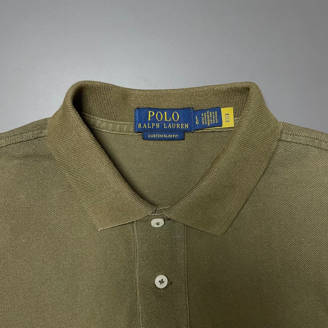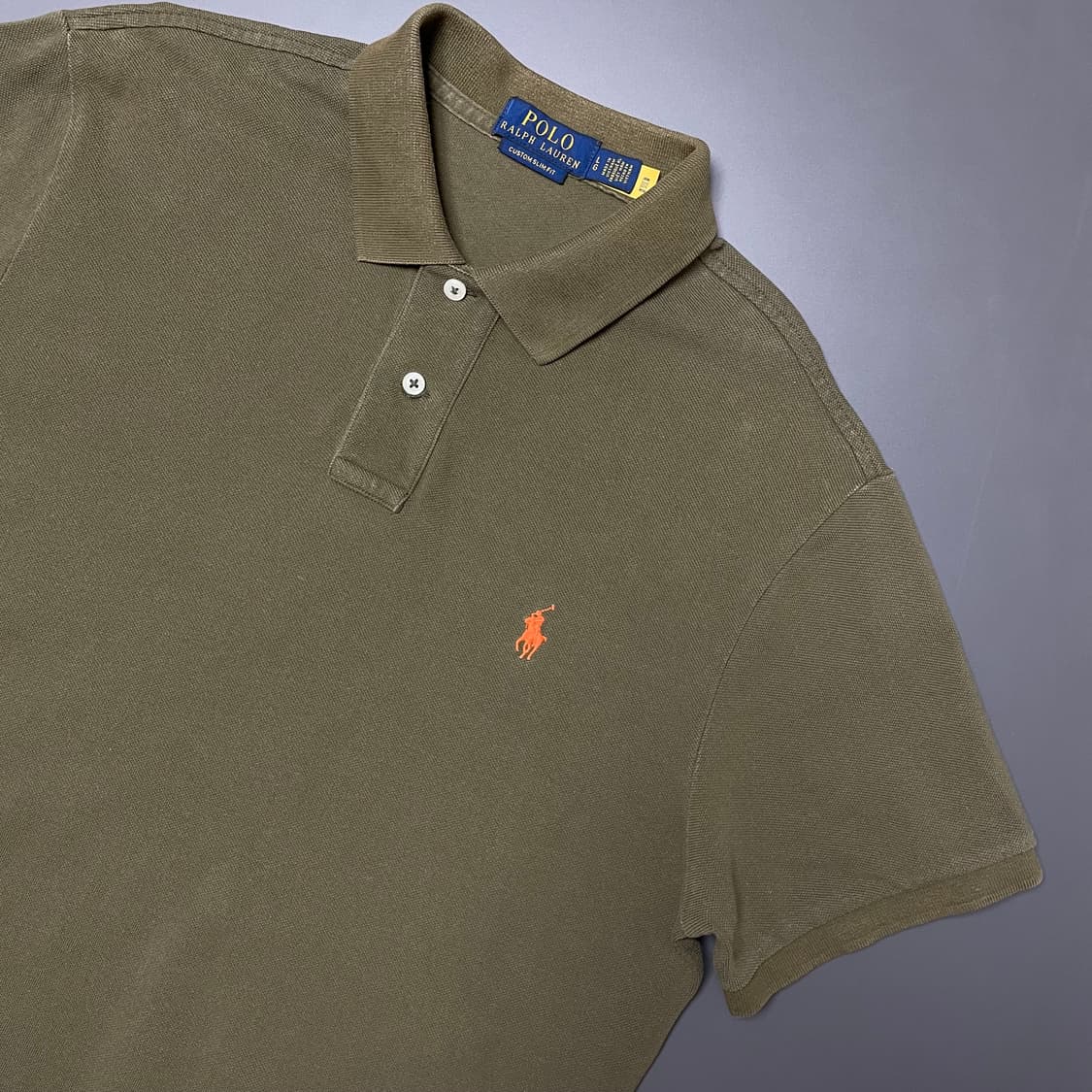 브랜드: 폴로 색상: 카키 사이즈: L 단면 상세 사이즈 커스텀 슬림핏 어깨 45cm, 가슴 55cm, 총장 75cm 클리닝 완료 중고거래 특성상 교환, 환불 불가합니다.