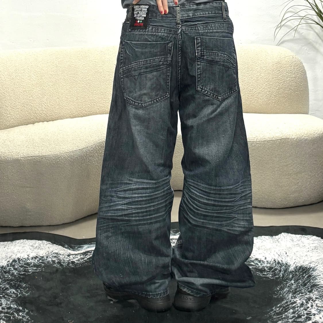 90s 빈티지 악어패치 캣워싱 와이드팬츠