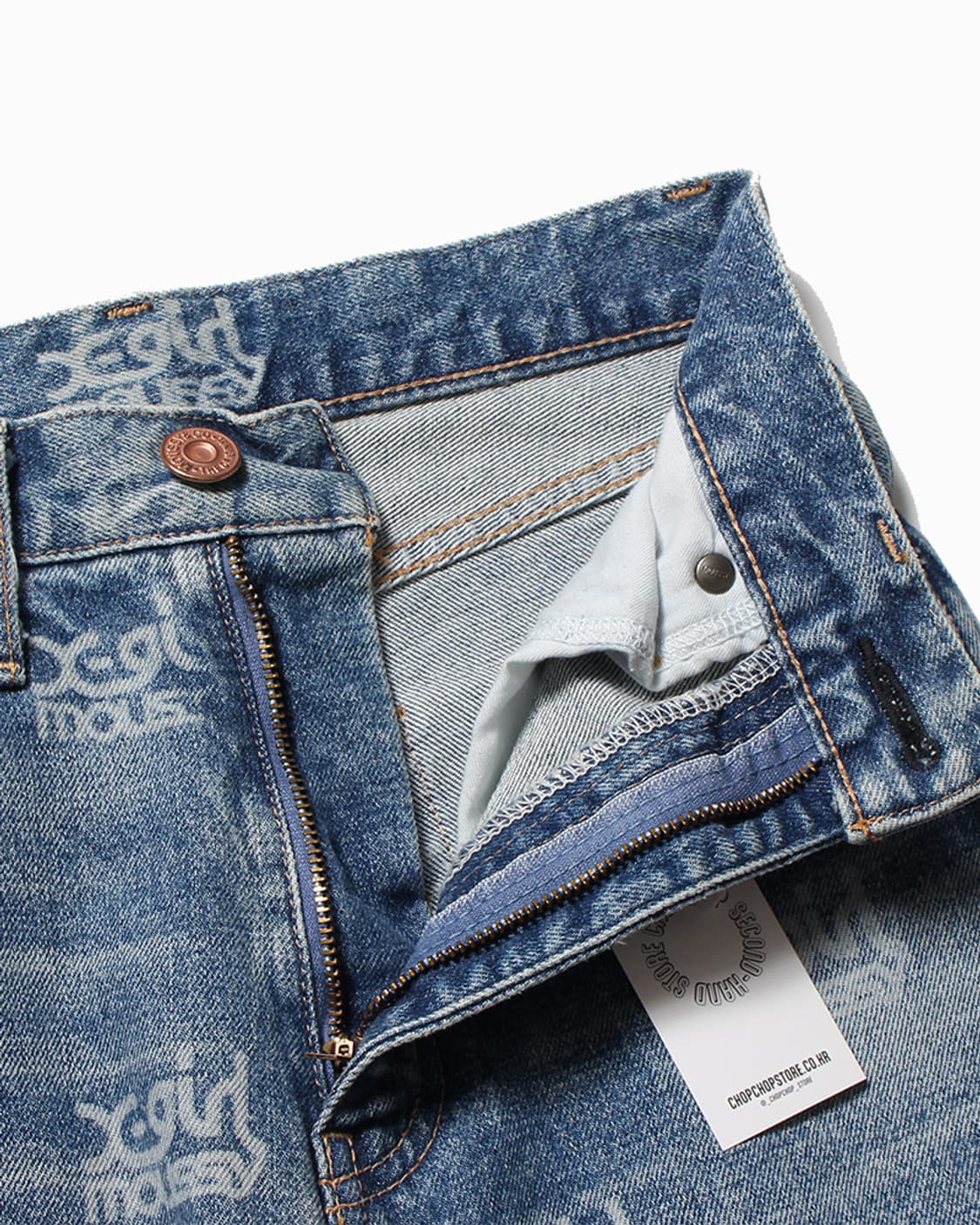 오존 커뮤니티 풀 프린팅 부츠 컷 데님 팬츠