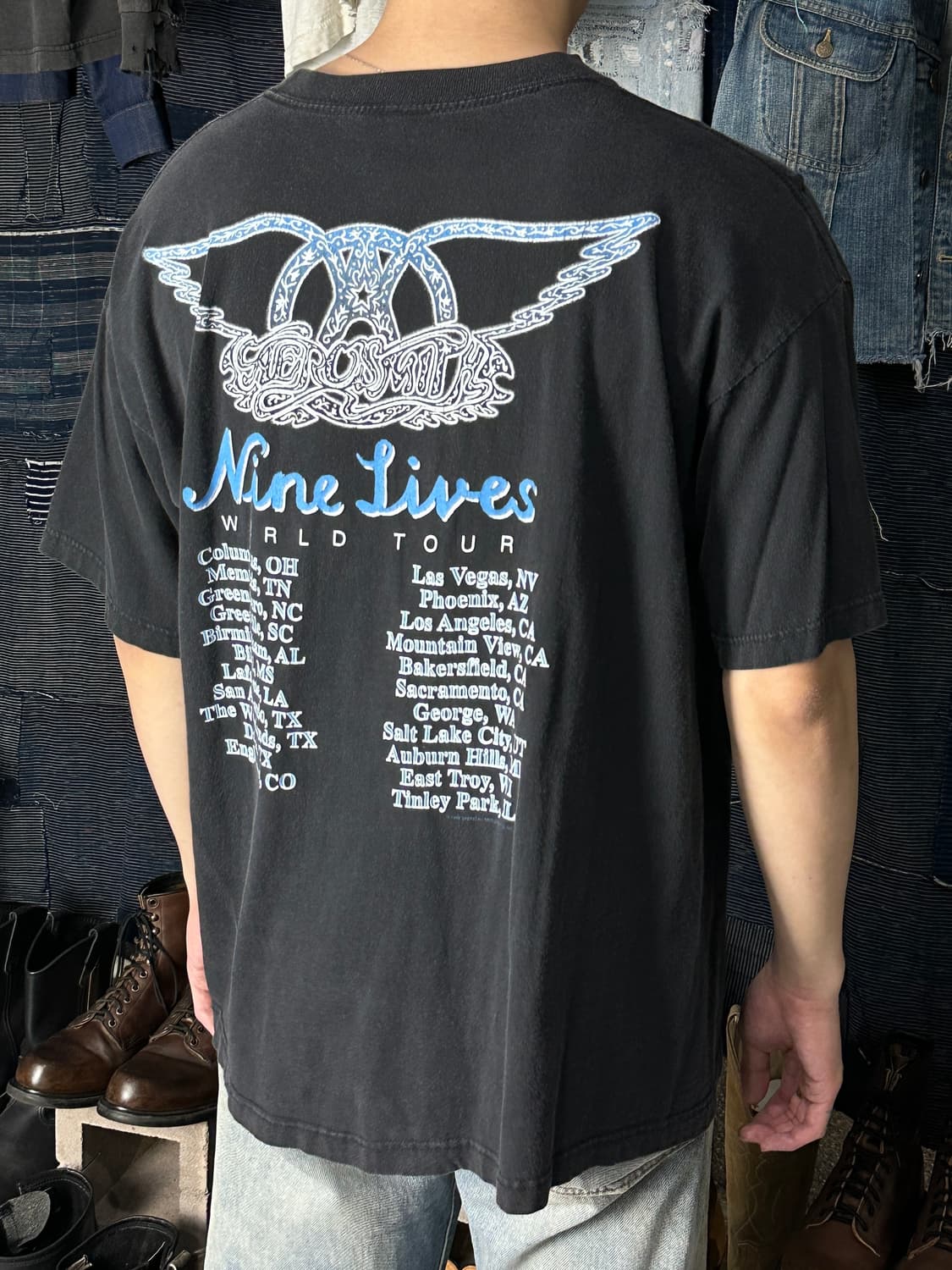 90's Aerosmith Nine Lives Tour T Shirt XL size Giant Tag 90년대 에어로스미스 Nine Lives 투어 티셔츠 XL 자이언트 택 에어로스미스는 제가 밴드음악에 빠지는 계기가되었던 고마운 밴드입니다 이전에는 힙합을 주로 들었었는데.. 이들의 2014 Dream On 라이브 때문에 음악취향이 아예 바껴버렸거든요 역사가 너무긴 밴드라 진짜 함축적으로 요약하면 아메리칸 하드락 그자체라고 보시면 됩니다 이들은 우여곡절도 많은 밴드라 70년대에 전성기가 오고 망했다가 다시 살아나고 80년대 말부터는 이전의 전성기보다 더 큰 성공을 이룬 밴드입니다 명곡도 워낙 많고 팝필러한 음악이 많아서 입문하시는 분들이 거부감 없이 들으실수 있을거에요 아트웍만봐도 음악이 대충 예상된다고 할까요 왠지모르겠는데 저는 그렇게 느껴지네요 페이드도 잘가있고 기장도 적당하고 딱 이상적입니다 (소매 사진을 보면 에이징감이 잘 보입니다) 어깨: 59 가슴: 60 소매: 21 총장: 74 183/70 💥 매장 주소: 서울 광진구 뚝섬로 476-21 1층 [ 1:00PM - 8:00PM / 월,화,수 휴무 변동가능 인스타 스토리 확인 부탁드립니다] 💥 💥올라와있는 상품 전부 판매중이니 문의 없이 바로 안전결제 가능합니다💥 💥 표기된 사이즈는 브랜드 별로 다 다릅니다 꼭 가지고 계신 옷과 실측 비교후 문의, 구매 부탁드립니다 💥 💥 빈티지 특성상 교환,환불 불가합니다 💥 확인이 힘든 오염,이염 있을수있으니 중고제품에 민감하신 분들은 신중한 구매 결정 부탁드립니다🙏