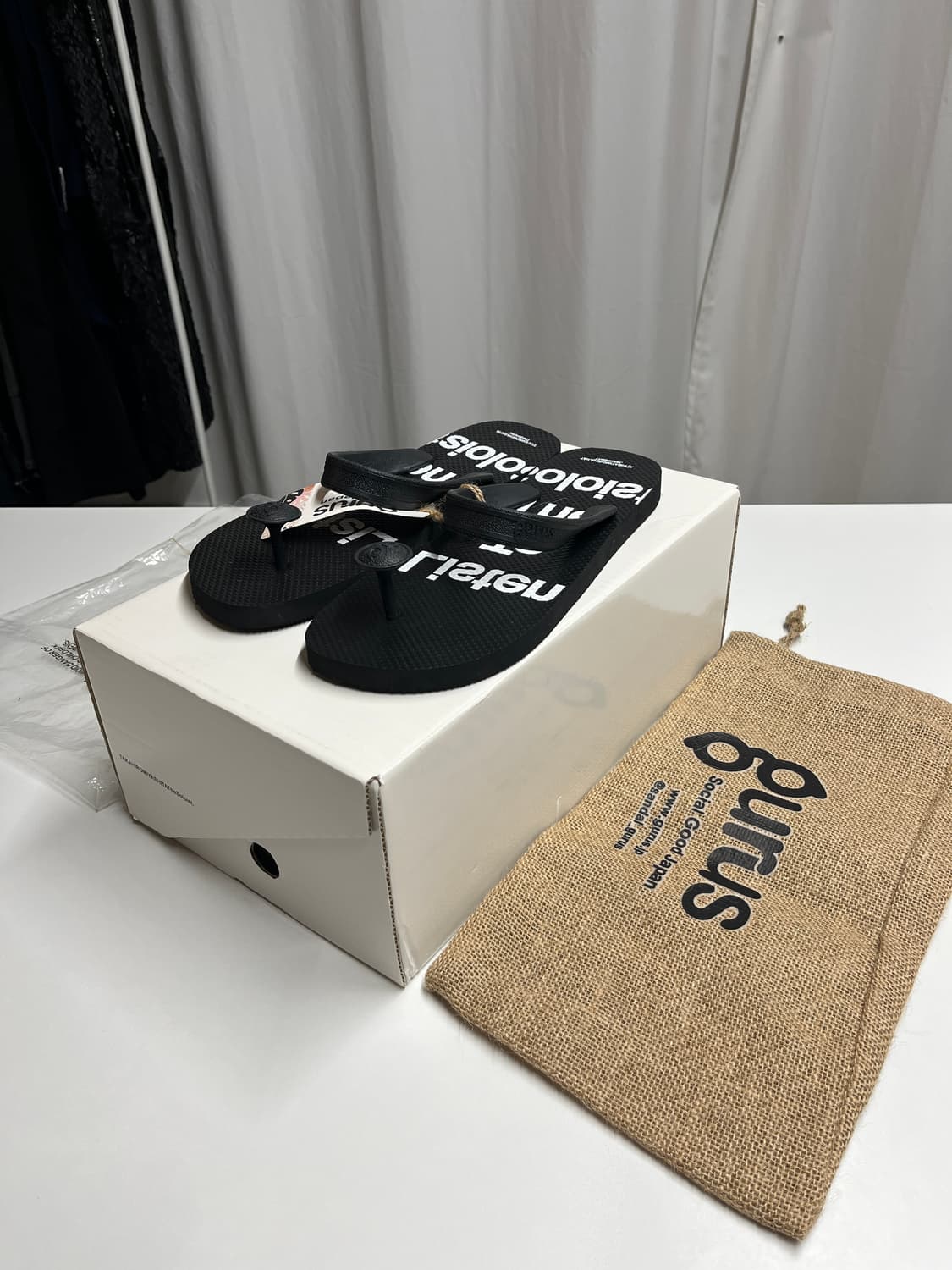 타카히로미야시타 더솔로이스트 x 그루즈 23ss 샌들 + 색상 블랙 + 사이즈 L + 실측 27.5 + 리미티드 더블네임 + 인도산 천연고무 100% + 'Listen To The Soloist' + 더스트/태그 포함 새제품 해변이나 우천시 벗겨지기 쉽고 미끄럽고 통증을 동반 하는 플립플랍의 단점들을 모두 커버해서 만든 디자인 천연 고무 나무에서 소재를 추출, 더스트백은 대마100% 폐기시 모두 토양으로 돌아 가는 친환경의 아이템 실제 굉장히 편안하고 안정적인 착용감 이후 다른 쪼리는 착용을 할수 없게 만드는! 공식 표기 사이즈 L(27.5-29) 이나 27-28까지 추천, 새제품