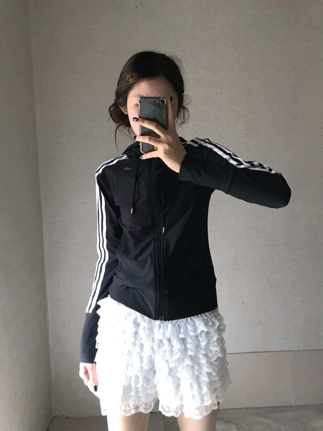 ¥ Adidas slim fit hood jersey Size: 총장55 가슴47 Price: 63,000