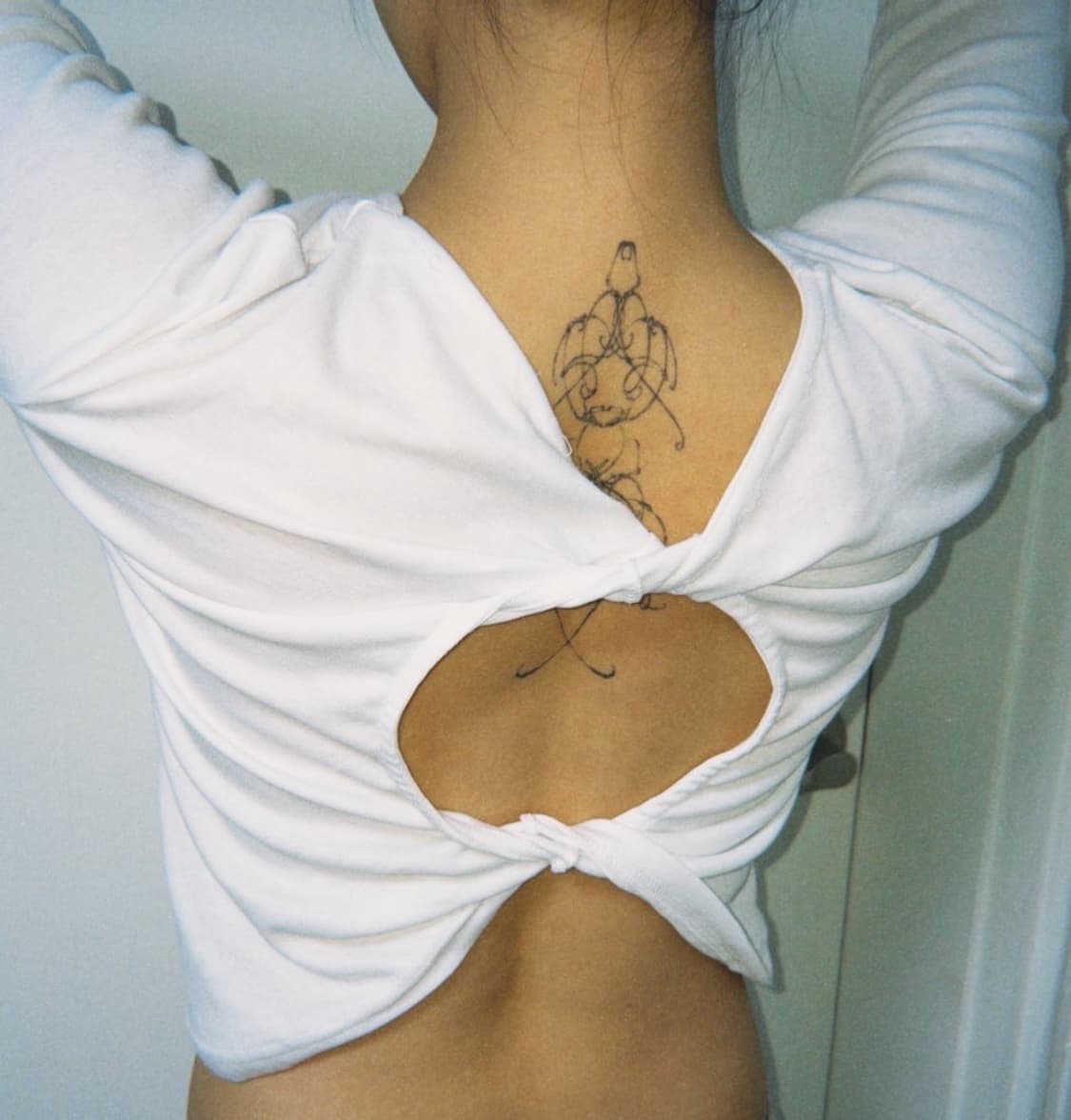 앞은 평범한 롱슬리브이고 뒤는 매듭으로 뚫려있습니다 간단한데 포인트 주기에 좋아요
