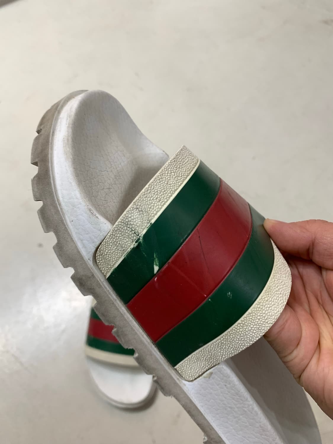 [정품] 구찌 화이트레더 사이드 삼색로고 스니커즈 265