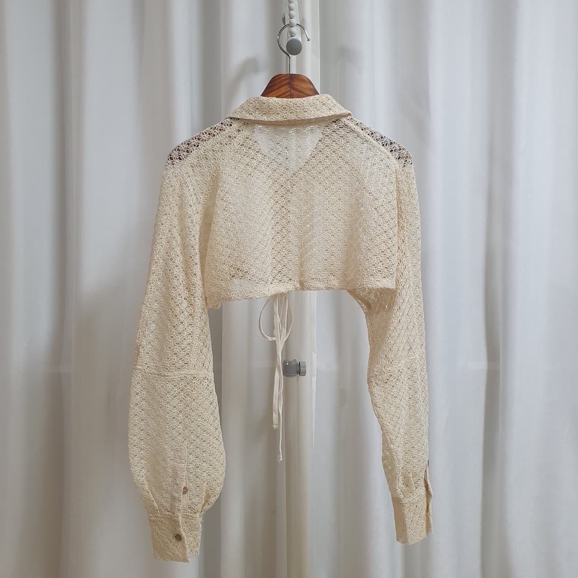 빈티지 크로쉐 숏 셔츠남방 가디건으로 활용 가능 상태 사용감 아주조금 전체적으로 좋아요 사이즈 프리 두께 얇음~보통 재질 크로쉐 비침 사진참고 기장 28 숏 기장 볼레로 느낌 교환/환불 불가