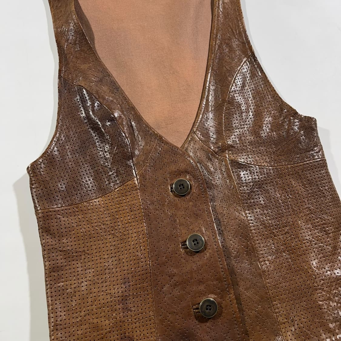 [SABOTAGE] 사보타지 버튼업 레더 베스트 ₩ 75,000 ✔ 색상: 브라운 ✔ 주 소재: 가죽 ✔ 사이즈: 어깨 / 가슴 / 총장 ✔ S: 28 / 36 / 55