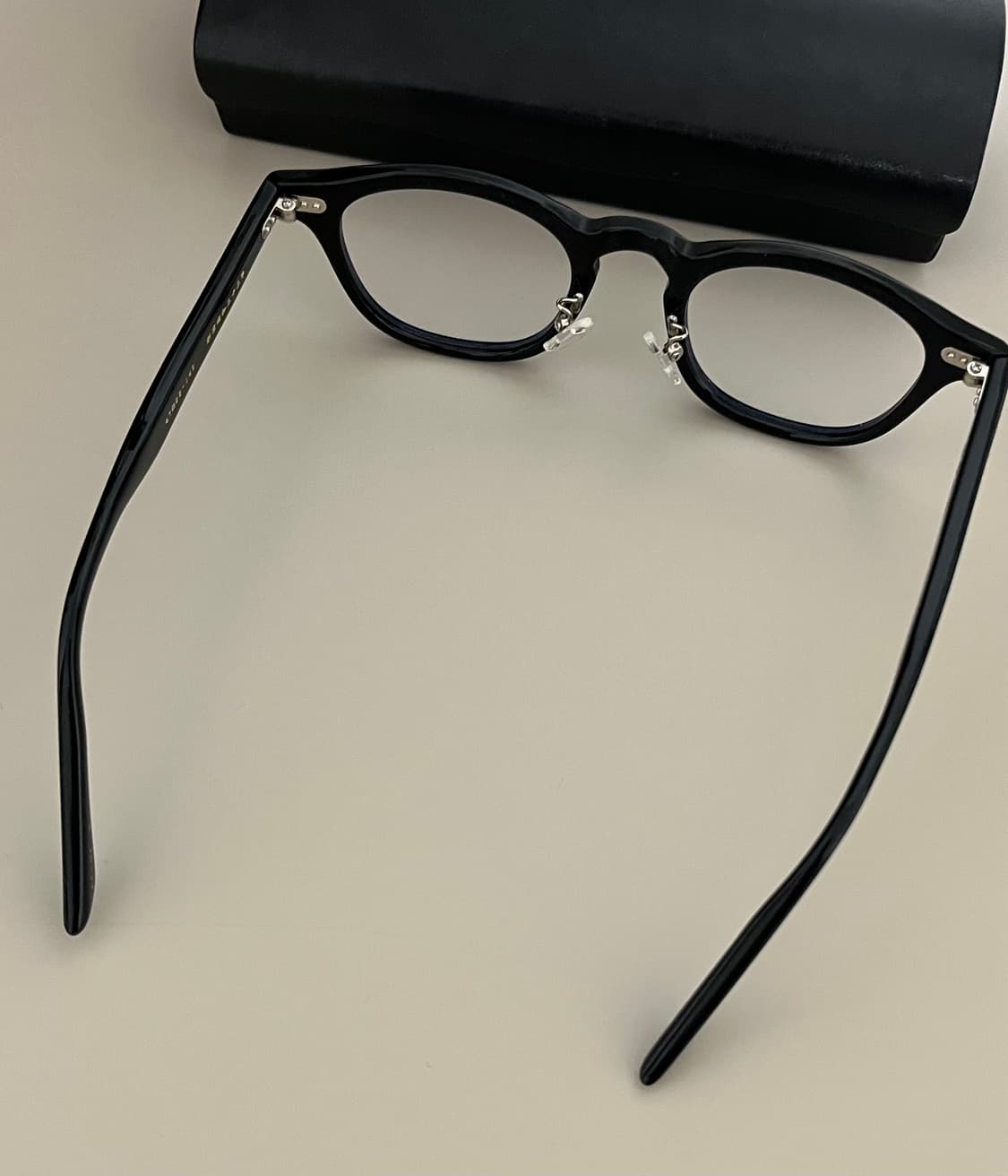 금자안경 가네코옵티컬 KC94모델 블랙컬러 셀룰로이드 제품이며 클래식한 아넬형으로 기본 뿔테 디자인 사놓고 착용을 안한 거의 새상품 블루라이트 차단 도수없는 렌즈로 바꾼 상태 가로 길이 : 47mm, 세로 길이 : 39mm, 브릿지 길이 : 22mm, 전면부 길이 : 143mm, 다리 길이 : 145mm 개인간의거래로 교환환불은 불가