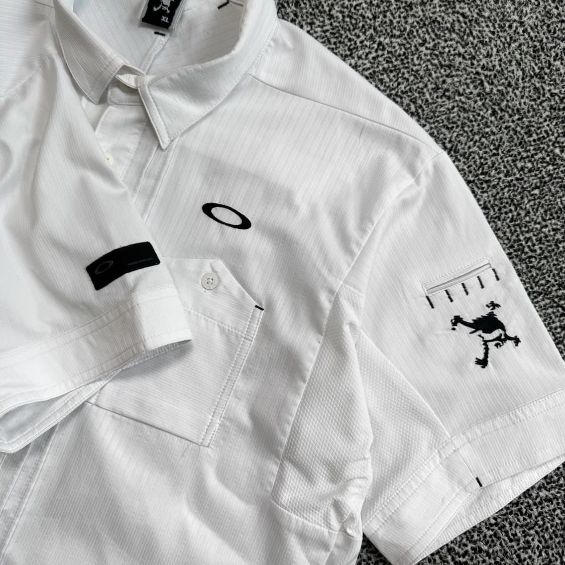Name : 오클리 해골로고 화이트컬러 반팔 셔츠 스웻자켓 :) • Size(cm) : [ XL ] (총장:72 가슴단면:57 ) • Price : [ 5.0 ]
