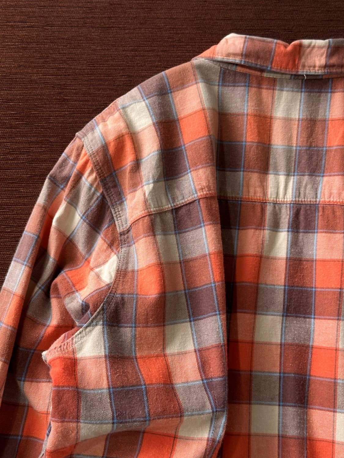 「Eddie Bauer」 Light cotton check nel design shirt • 라이트 코튼 플란넬 소재의 가볍고 포근한 느낌 • 표면의 옅은 기모감이 있는 보송보송하고 드라이한 텍스쳐 • 레트로 무드의 체크 패턴이 있는 컬러감 • 하단부 의도된 듯 한 스팟 페이드로 더해지는 빈티지함 • 캣츠아이 버튼 디테일 Color | Light orange, Brown, Blue Fabric | 코튼 100% Size | PL 어깨 | 40.5 cm 가슴 | 55 cm 소매 | 57 cm 총장 | 65 cm Model | 165 cm / kr 44 ~ 55 size