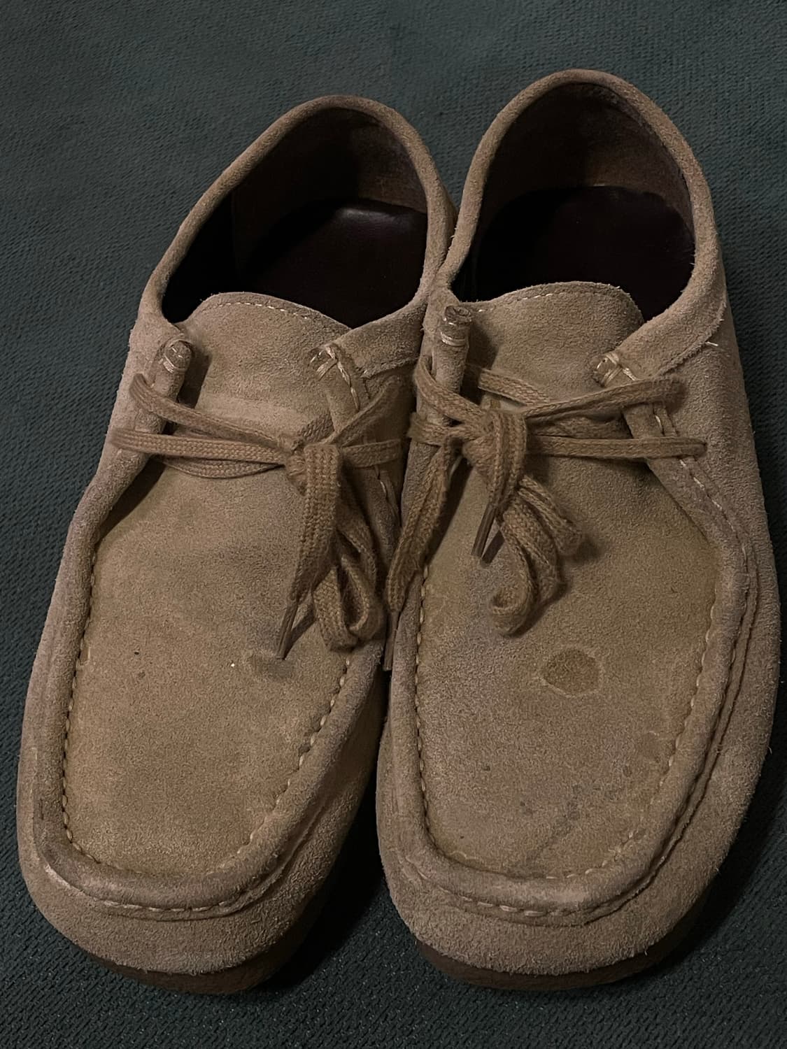 GU의 클락스 모카신입니다. 밑창 보시면 아시겠지만 거칠게 신지 않았습니다. 뒷축에 약간의 생활오염. 전면 스웨이드 먼지 정도 있구요 +전체 상태는 사진이랑 똑같아요. 물건 받고나서 마음에 안들거 같으신분들은 뒤로가기 눌러주세요 제발 사이즈는 기억 안나는데 반스 기준 정사이즈 260신으시는분들에게 편하게 딱 맞을겁니다. 개인간의 중고거래이다보니 환불/취소 불가합니다. 신중하게 거래해주시고 직거래는 상봉역에서 가능합니다.