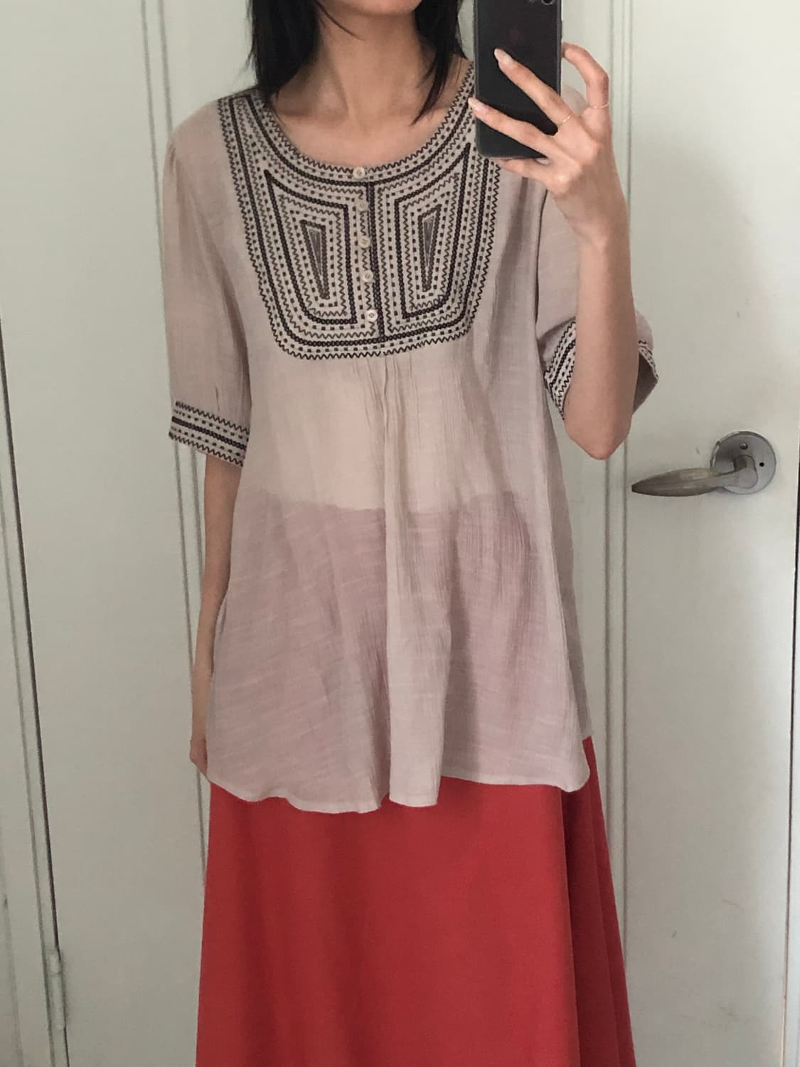 메이린넨 린넨 블라우스 Simple Round Blouse