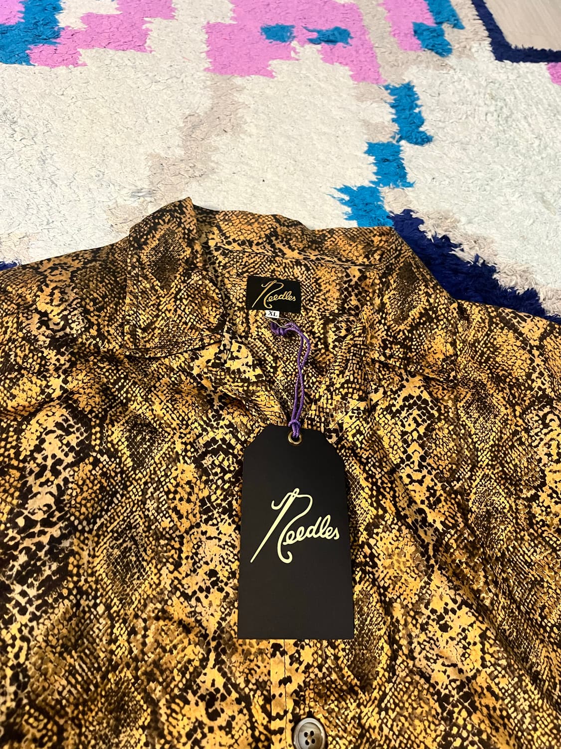 니들스 파이톤 셔츠 xl 사이즈이며 옐로우와 화이트 택달린 채로 소장중입니다 와코마리아같은 정핏보다는 하와이안 느낌의 후리한 느낌이 좋아서 소장중인 제품 풀어봅니다 xl 사이즈 구하기 어려울것같고 특유의 루즈한 느낌에 공감하시면 좋은 제품될 것 같습니다 (옐로우 주문용)