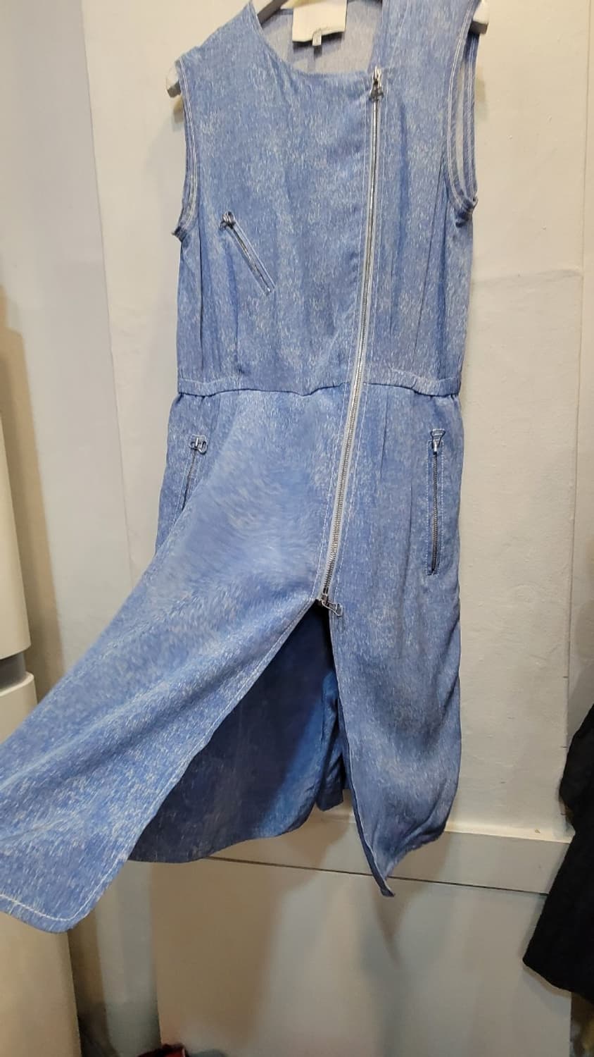 3.1 필립림 2사이즈 정품 국내 44~정55 반품44 총장93 탄탄한 고퀄 실크100%로 입었을때 몸을 따라 흐르는핏이 예술입니다 겉으론 원피스. 집업열면 반바지로 활동편하구요 상태좋습니다 100.000