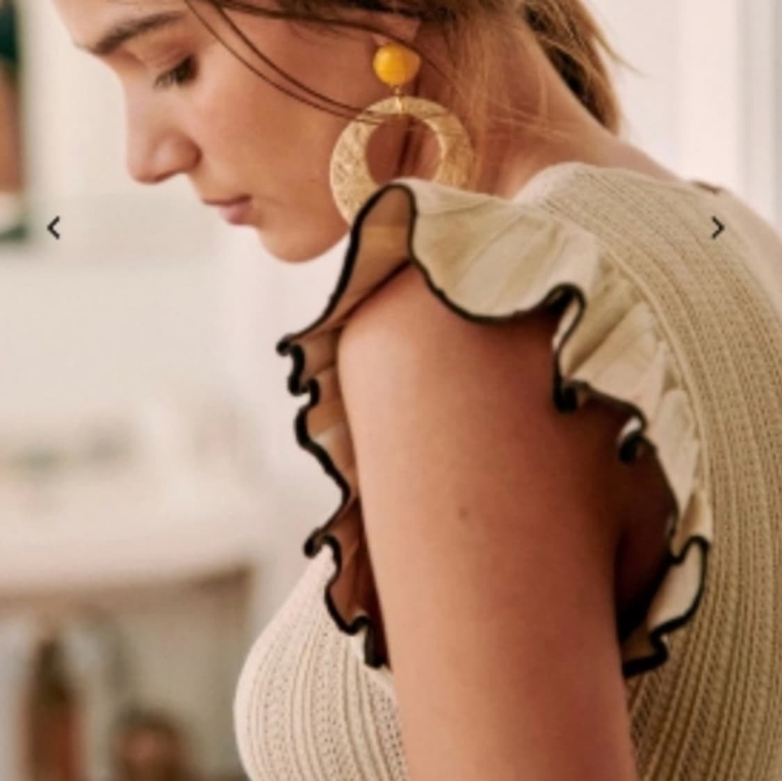 (새상품) 베이지 러플 민소매 니트 XS사이즈 여성스러운 러플 소매 니트에요 패턴이 들어가있어서 더 유니크해보이고 소매 끝단에 블랙으로 포인트를 줘서 더 예쁘답니다! 택있는 새상품이라 선물도 가능해요