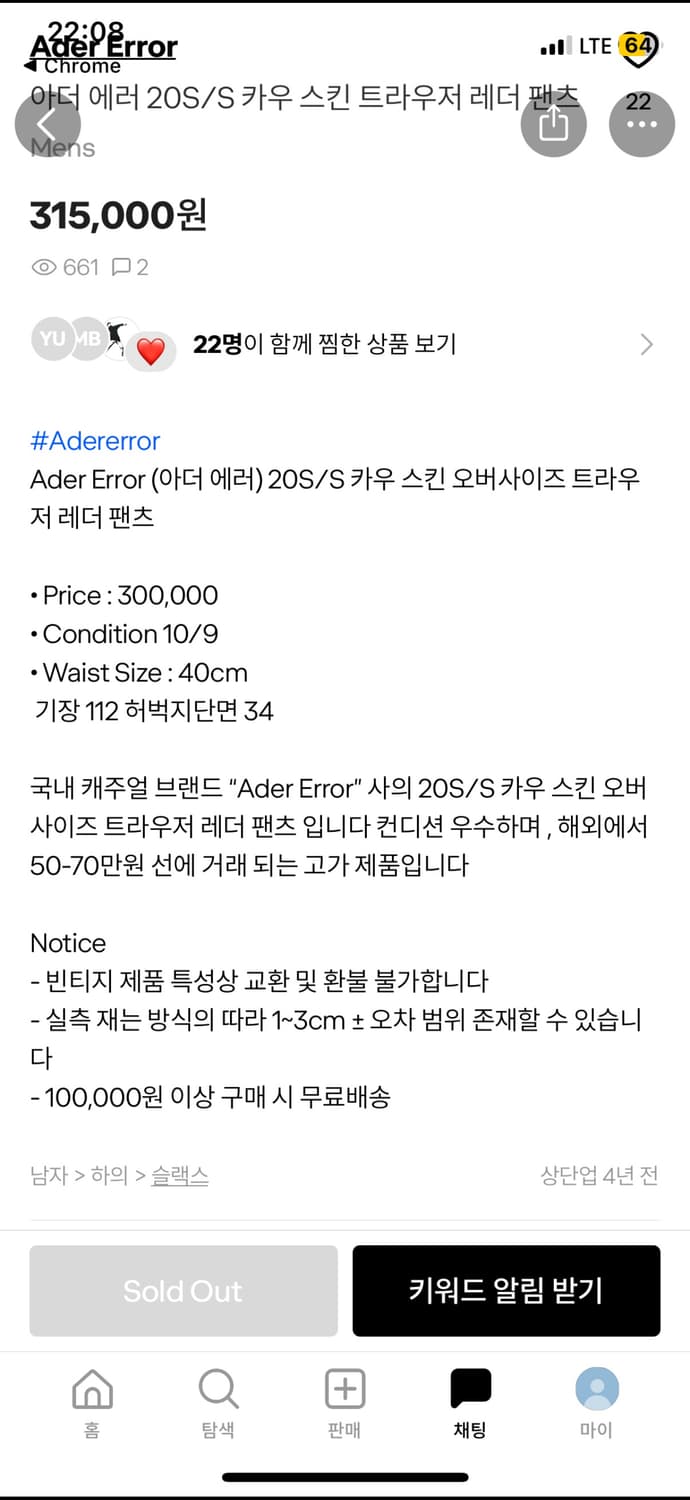 (S-M) 아더에러 청바지 데님 연청 일자핏 한정판-22C1