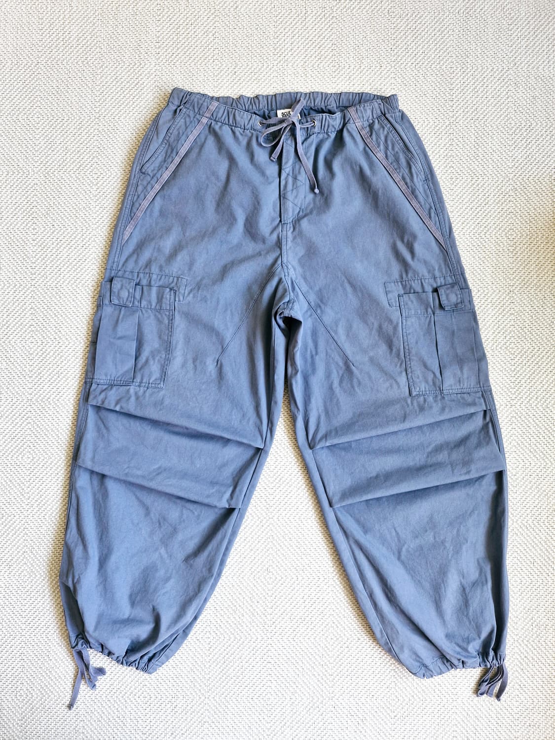 스컬프터 파라슈트 카고팬츠 L 사이즈입니다 - 색상: 빈티지 블루 - 면100% - 흠없고 오염없는 아주 좋은 상태 허리 41 (허리밴드, 스트링있음) 허벅지 39 밑단 29 총장 107