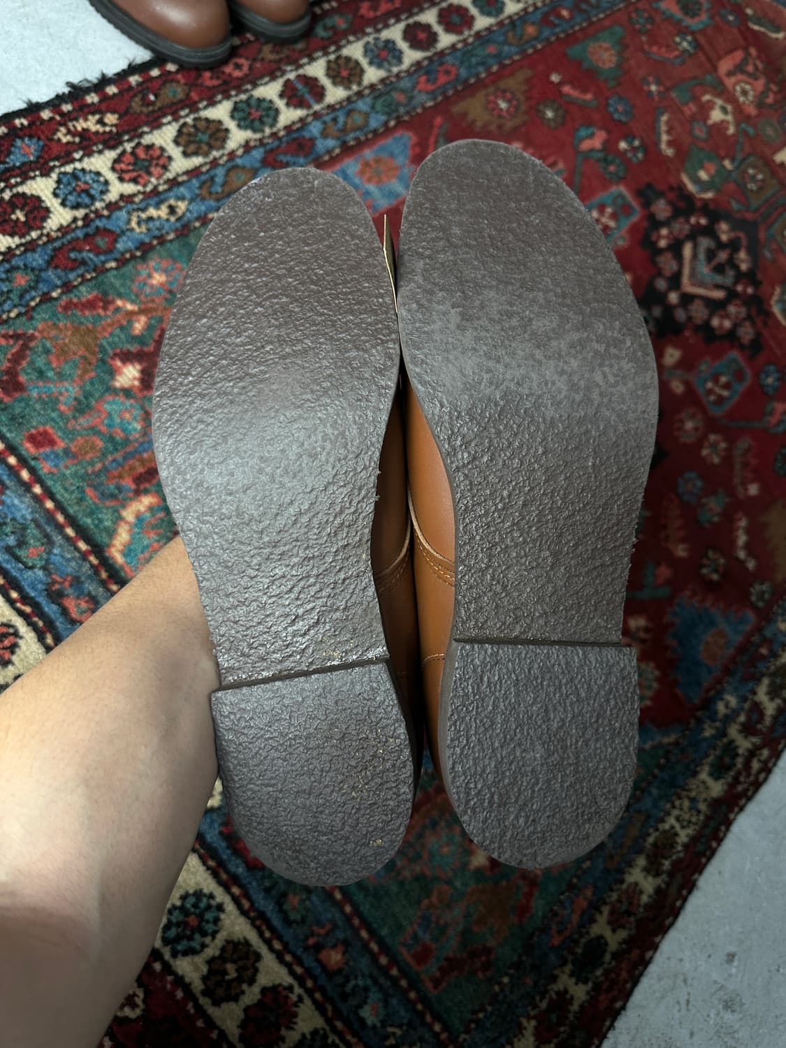 90's Red Wing Blacksmith 11.5 size Made in USA 🇺🇸 90년대 레드윙 블랙스미스 11.5 (295) 이름에서부터 알수있듯이 대장장이들에게 인기있어블랙스미스 라고 명명된 모델입니다 이녀석이 특이한건 90년대 OG개체라는건데 그 시기는 레드윙이 지금처럼 패션화의 개념이 없을때라 순전히 노동자들을 위해 만들어졌던, 찐 워크부츠였던 시절의 제품입니다 우리에게 익숙한 레드윙 아이언레인저, 벡맨, 블랙스미스 이런 제품들은 정식으로 명명되어 나오던게 20년정도 밖에 안되었으니 사실 이녀 석도 블랙스미스 라기보단 블랙스미스의 전신인 모델이라고 봐야하죠 쉐입이나 아일렛 사양이 확실히 블랙스미스와 흡사합니다(쉐입은 훨씬 날카롭습니다 포스트맨 느낌) 착용으로도 당연히 좋고 레드윙 팬분들 중에서 컬렉팅으로 소장하 실분들께 정말 좋아보입니다 길이26.5cm 볼9cm (평소 270-275신음) 기준 너무 큰 사이즈감 285이상 분들께 추천 굽: 3 길이: 33 착샷의 데님은 오늘 같이 업데이트된 80's 리바이스 517 34x30 사이즈 입니다