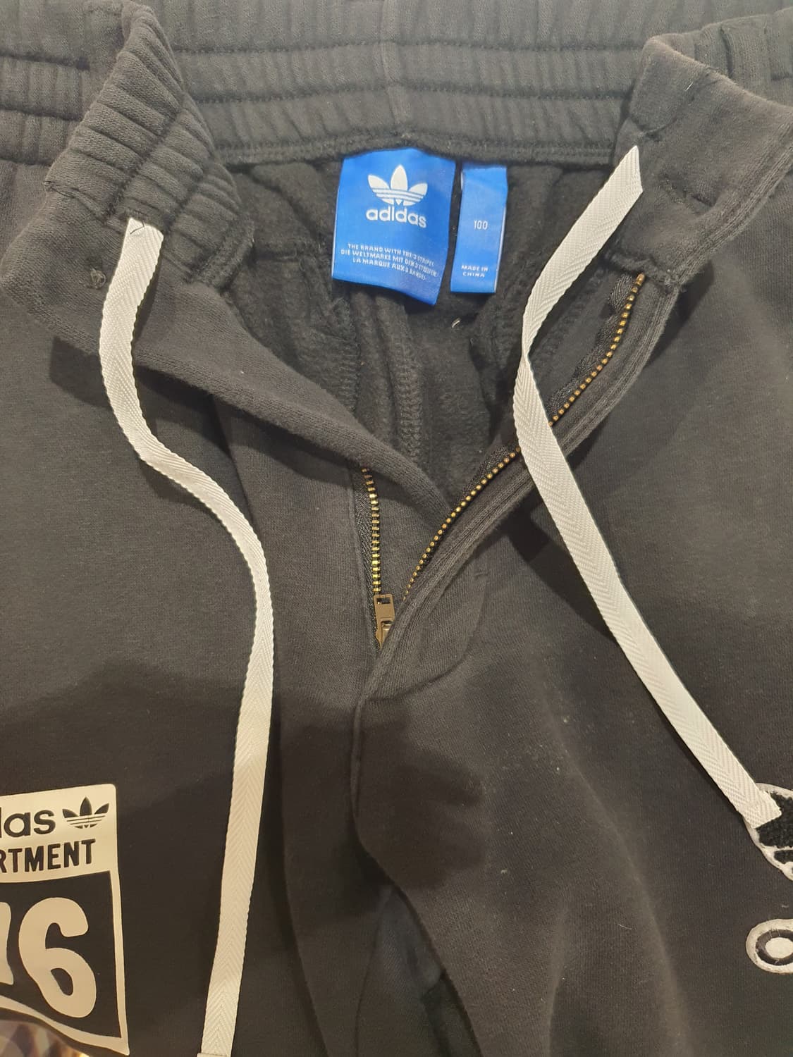 아디다스 남성 트레이닝 바지 판매합니다! 사이즈는 100 허리둘레는 84cm 표기입니다 색상은 블랙이고 허리랑 밑단부분 조절할수 있는 끈 있습니다. 가을 겨울 용 상품으로 저렴하게 판매합니다!