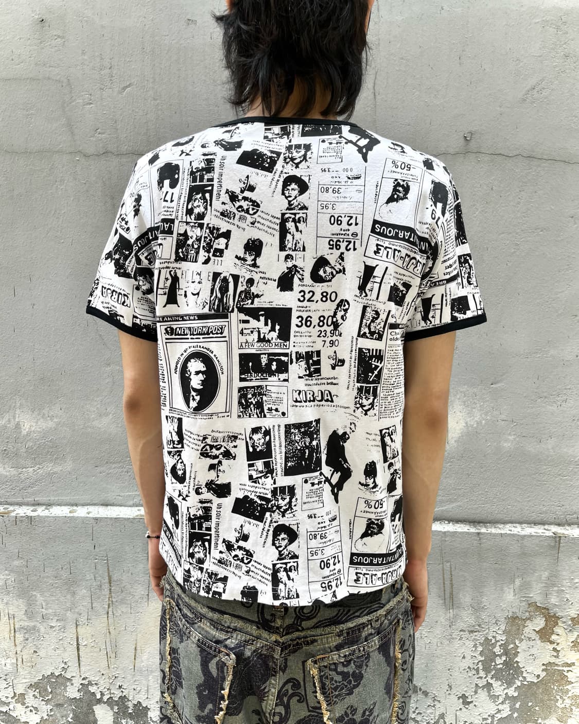 Select Vintage(Jpn), • Japanese Unknown • 펑키한 분위기의 아트워크 프린트가 돋보이는 제페니즈 빈티지 링거 티셔츠입니다. • 신축성이 좋아 타이트하게 착용하셔도 편안한 활동성을 제공합니다. Size - 미표기 / 권장 ~Men's M, Women's F 57/53/48/17CM (총장/가슴단면/어깨/팔) ₩ 39,000 - 단 하나뿐이며 제품 사용과 보관 환경, 손탐에 예민한 빈티지 제품 특성상 교환/반품 불가, 사진과 설명에 최대한 기재하려고 노력하지만 미처 발견하지 못한 데미지나 오염이 존재할 수 있으니 빈티지, 구제, 세컨핸드 문화에 대하여 너그러움을 가지신 분들께만 구매를 권합니다. #빈티지 #Vintage #아카이브 #Archive #일본 #제펜 #제페니즈 #Japanese #JPN #Japan #일본빈티지 #JapaneseVintage #하라주쿠 #시부야 #도쿄 #우라하라 #패션 #00s #2000s #90s #1990s #반팔 #반팔티 #티 #반팔티셔츠 #티셔츠 #하프 #하프슬리브 #슬리브 #Half #T #Shirt #Shirts #Sleeve #T #TShirt #프린팅 #프린트 #Blue #Print #Printed #Printing #링거 #링거티 #링거티셔츠 #Ringer #Tee #블랙 #화이트 #Black #WHite #패턴 #Pattern #아트워크 #아트 #워크 #그래픽 #Art #Work #ArtWork #Graphic #고딕 #Gothic #고스 #펑크 #젠더리스 #락시크 #Funk #Punk #그런지 #Grunge #스트릿 #Y2K #크롭 #크롭티 #크롭티셔츠 #크롭핏 #핏 #세미 #세미크롭 #세미크롭티 #Semi #Crop #Fit #매거진 #Magazine #뉴스페이퍼 #Newspaper #존갈리아노 #존 #갈리아노 #John #Galliano #Johngalliano