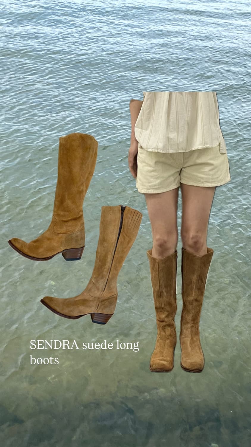 🩵슬림한 실루엣연출, 끝부분 밴딩으로 착용감 좋음 🩵164cm 모델 착용시 무릎 아래까지 오는 긴 길이감 SIZE - 표기사이즈 7 1/2 (245 정도 사이즈) 모델 사이즈 235인데 신었을때 착용감이 괜찮았어요! 넉넉하게도 신기 좋습니더.