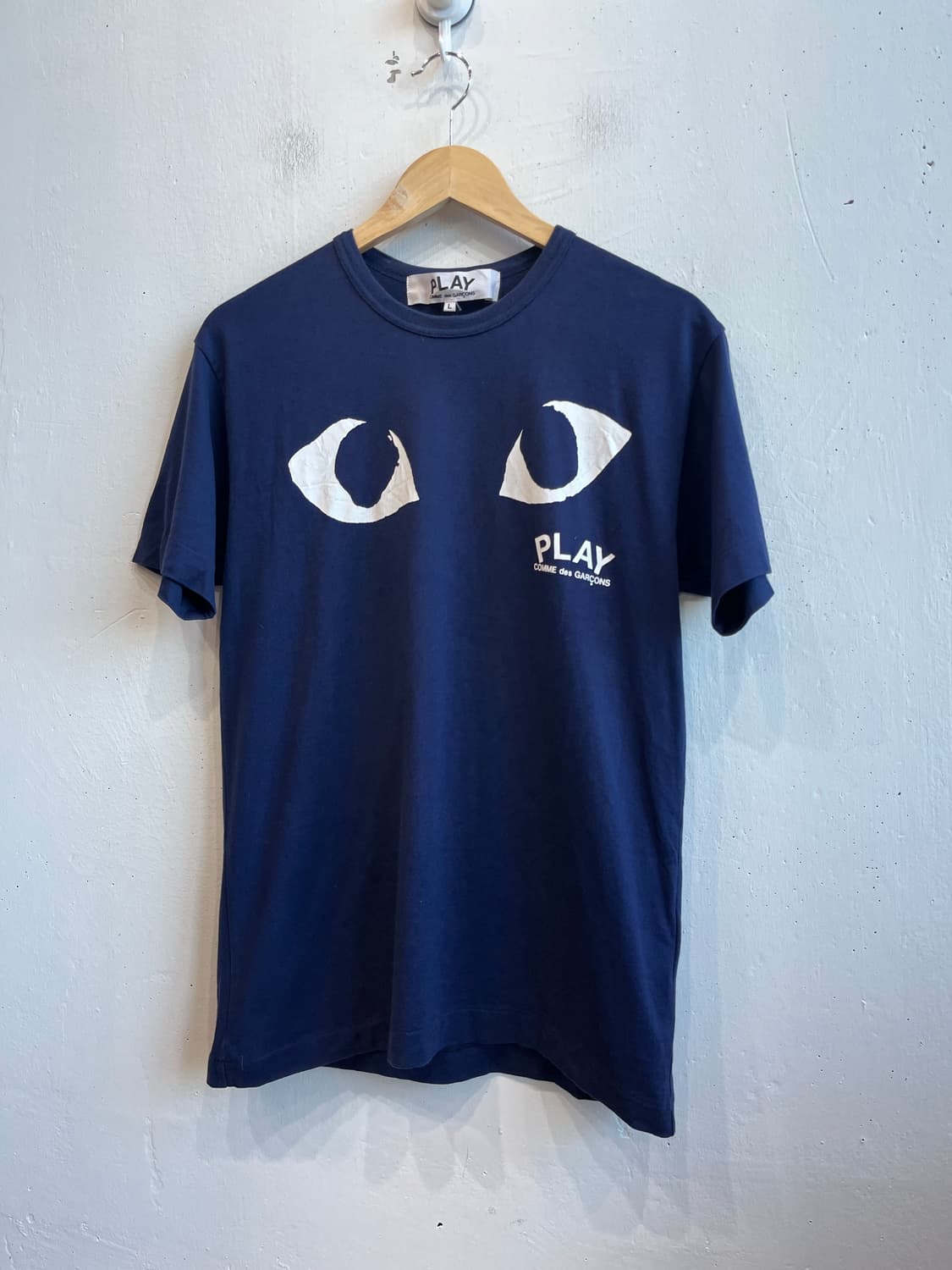 꼼데가르송 eyes 로고 반팔 티셔츠 - 정품 - 약간의 사용감 외 전반적으로 양호한 컨디션 - 국내 맨즈기준 M 추천 어깨46 가슴단면50 총장70 팔길이21 250616
